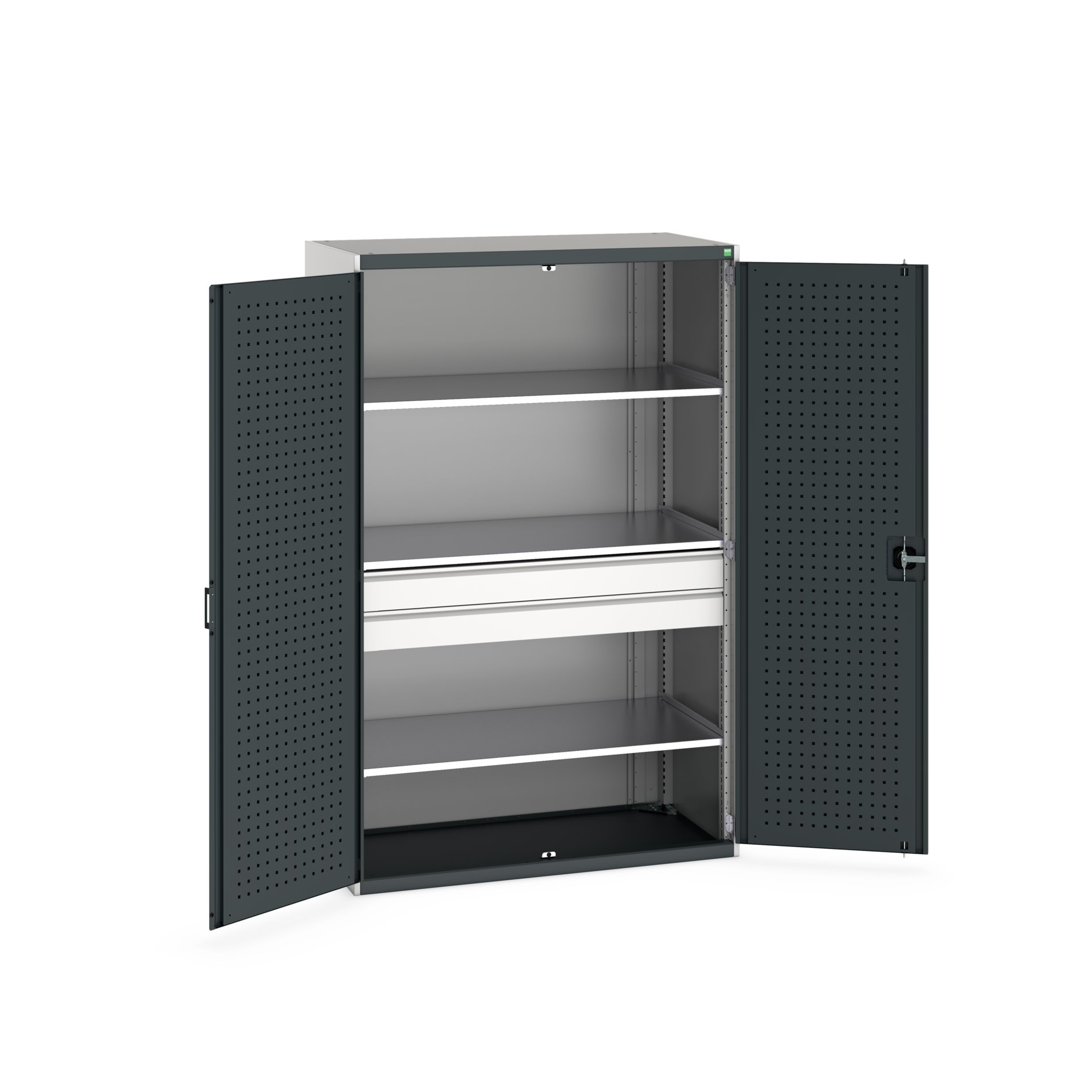 This is 2 Door 2 Drawer Sheet Steel Floor Standing Cupboard 1300 X 650 X 2000mm manufactured by Bott. The manufacturer part number is 40022139.19V. It has a floor standing trait yes . It contains 2 dedicated doors . The given dimensions of the product include 1300 x 650 x 2000mm. The product is made from highly stable and reliable sheet steel. It contains 3 high quality shelves . It includes 2 high-quality drawers . It comes in kitted cupboard configuration.