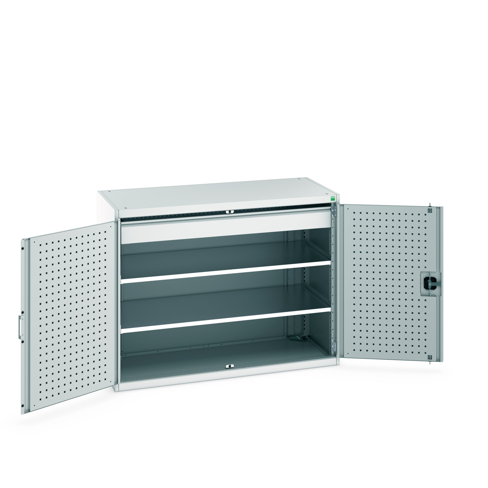 This is 2 Door 1 Drawer Sheet Steel Floor Standing Cupboard 1300 X 650 X 1000mm manufactured by Bott. The manufacturer part number is 40022083.16V. It has a floor standing trait yes . It contains 2 dedicated doors . The given dimensions of the product include 1300 x 650 x 1000mm. The product is made from highly stable and reliable sheet steel. It contains 2 high quality shelves . It includes 1 high-quality drawers . It comes in kitted cupboard configuration.