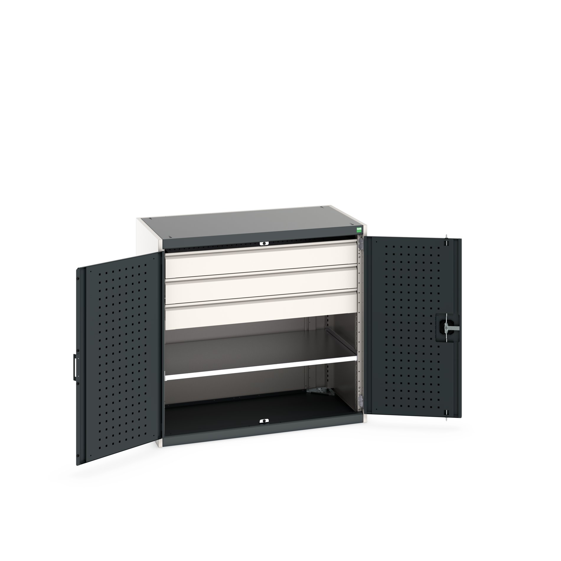 This is 2 Door 3 Drawer Sheet Steel Floor Standing Cupboard 1050 X 650 X 1000mm manufactured by Bott. The manufacturer part number is 40021203.19V. It has a floor standing trait yes . It contains 2 dedicated doors . The given dimensions of the product include 1050 x 650 x 1000mm. The product is made from highly stable and reliable sheet steel. It contains 1 high quality shelves . It includes 3 high-quality drawers . It comes in kitted cupboard configuration.