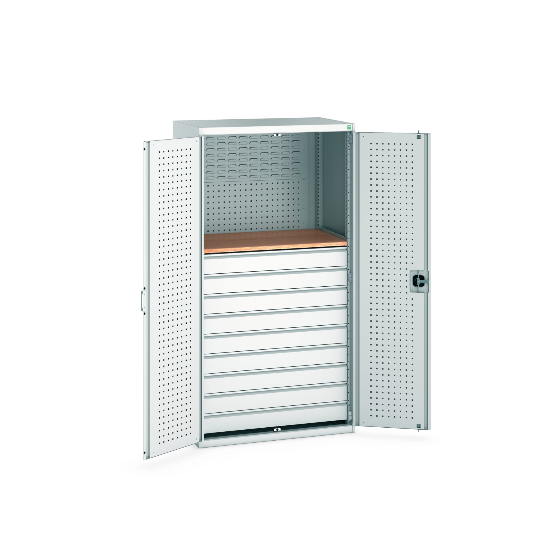 This is 2 Door 9 Drawer Sheet Steel Floor Standing Cupboard 1050 X 650 X 2000mm manufactured by Bott. The manufacturer part number is 40021204.16V. It has a floor standing trait yes . It contains 2 dedicated doors . The given dimensions of the product include 1050 x 650 x 2000mm. The product is made from highly stable and reliable sheet steel. It contains 1 high quality shelves . It includes 9 high-quality drawers . It comes in cabinet configuration.