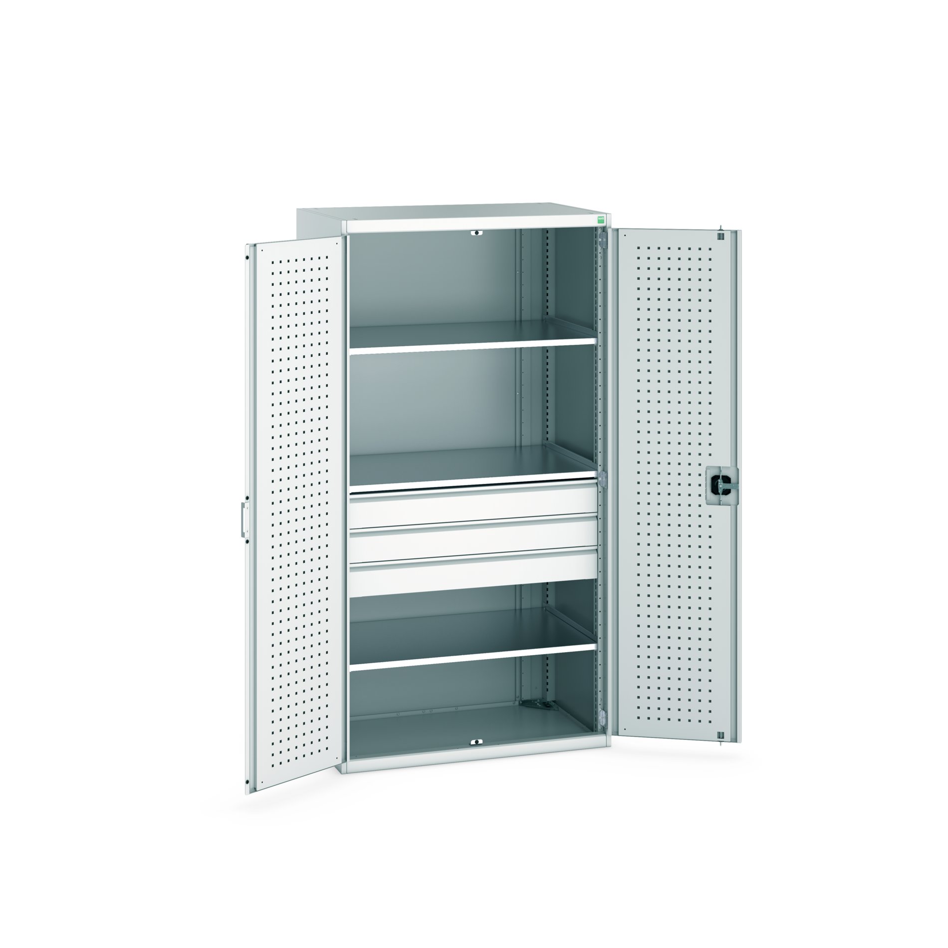 This is 2 Door 3 Drawer Sheet Steel Floor Standing Cupboard 1050 X 650 X 2000mm manufactured by Bott. The manufacturer part number is 40021109.16V. It has a floor standing trait yes . It contains 2 dedicated doors . The given dimensions of the product include 1050 x 650 x 2000mm. The product is made from highly stable and reliable sheet steel. It contains 3 high quality shelves . It includes 3 high-quality drawers . It comes in kitted cupboard configuration.