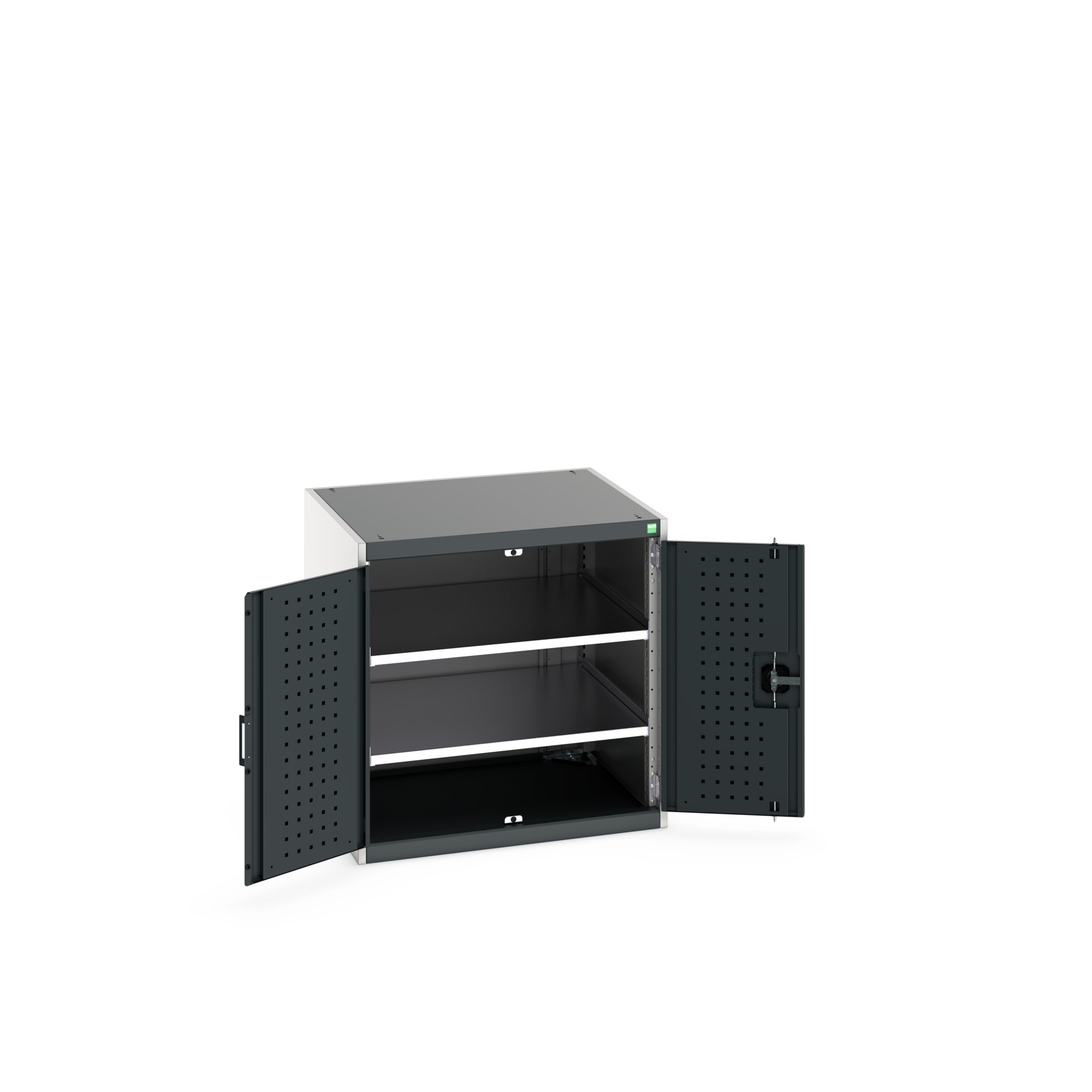 This is 2 Door Sheet Steel Floor Standing Cupboard 800 X 750 X 800mm manufactured by Bott. The manufacturer part number is 40028099.19V. It has a floor standing trait yes . It contains 2 dedicated doors . The given dimensions of the product include 800 x 750 x 800mm. The product is made from highly stable and reliable sheet steel. It contains 2 high quality shelves . It comes in shelf cupboard configuration.