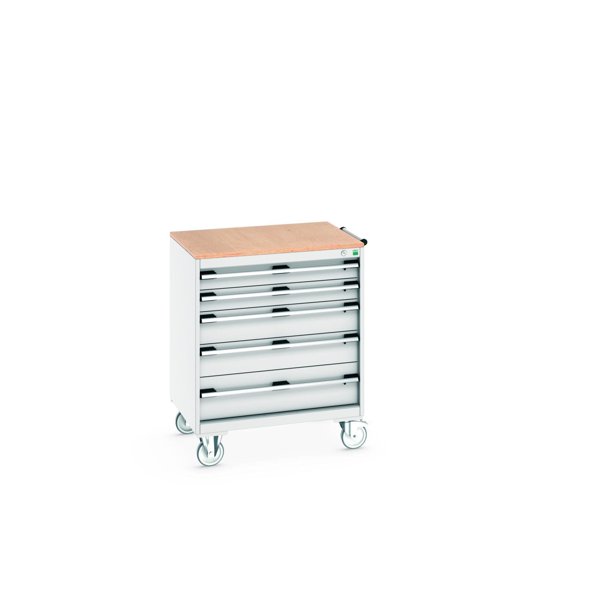 This is 5 Drawer Sheet Steel Floor Standing Storage Cabinet 800 X 650 X 990mm manufactured by Bott. The manufacturer part number is 40402157.16V. It has a floor standing trait yes . It includes 5 high-quality drawers . The product is made from highly stable and reliable sheet steel. It comes in mobile cabinet configuration. The given dimensions of the product include 800 x 650 x 990mm.