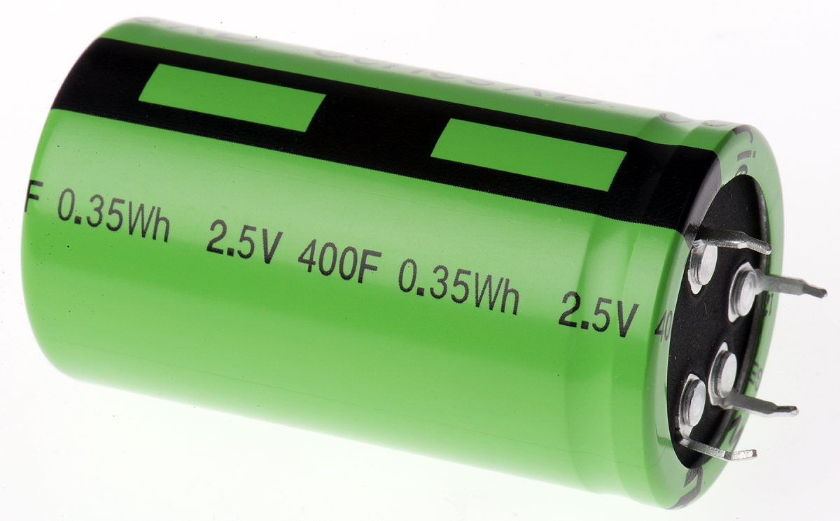 This is Cooper Bussmann 400F Supercapacitor EDLC ±10% Tolerance Supercap XB 2.5V dc Through Hole manufactured by Eaton Bussmann Series. The manufacturer part number is XB3560-2R5407-R. Its diameter is 35mm. The product is available in through hole configuration. The given dimensions of the product include 35 x 60mm. Furthermore, the lead has 1.5mm diameter. The product supercap xb, is a highly preferred choice for users. Whereas, the minimum operating temperature of the product is -25°c. It is from electric double layer capacitor family . It has 4.5mω equivalent series resistance. In addition, the height is 60mm. It provides a 400f of capacitance value. The product comes in 60mm depth. It carries a 2.5v dc of voltage. Whereas, the product's diameter is almost 4mm . It provides a long-lasting service for a period of 1500h. The lead features 22.5mm pitch. It has a maximum operating temperature of +70°c. It features ±10% of tolerance value. The terminal is a through hole type.