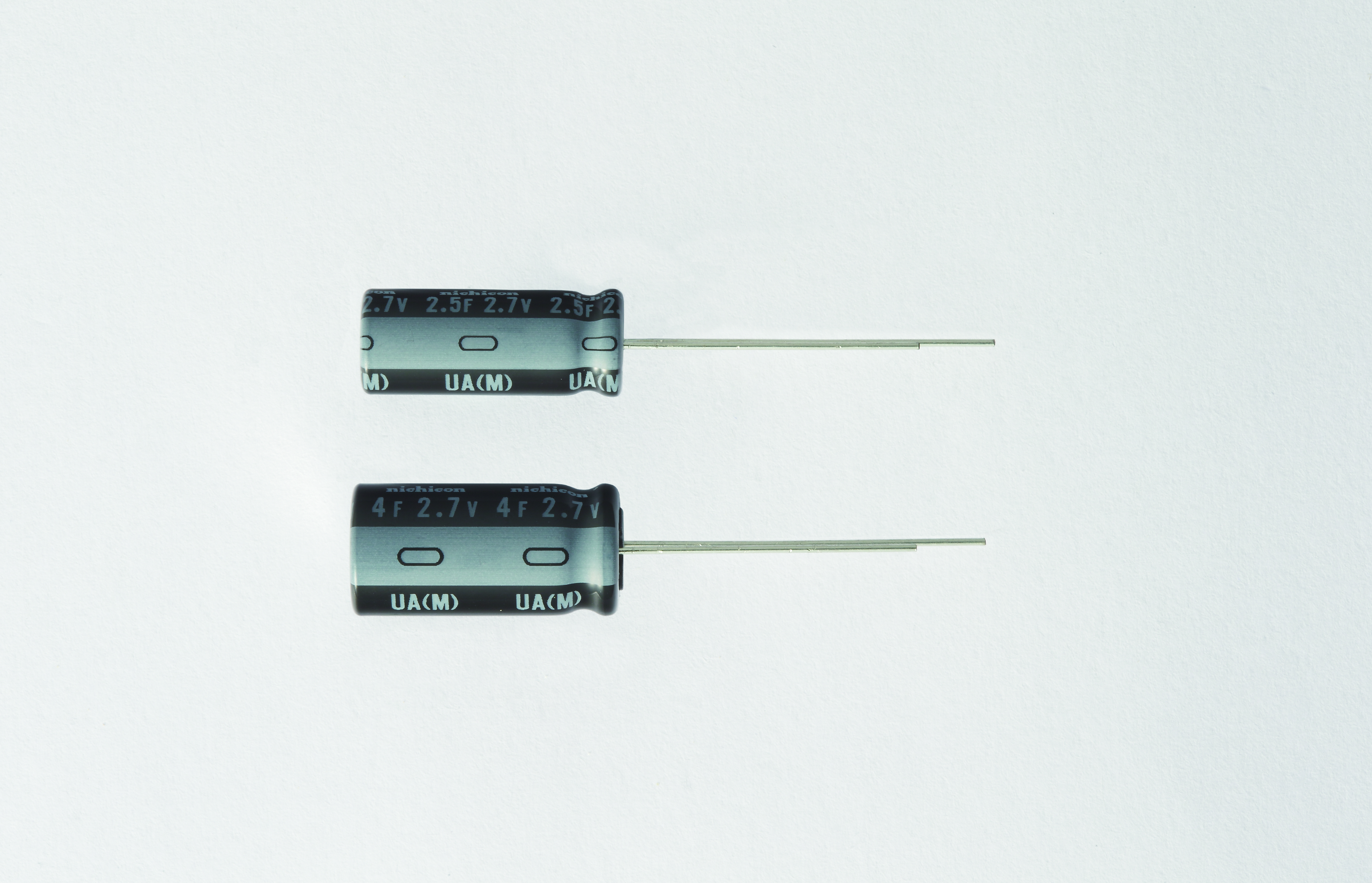 This is 2.5F Electric Double Layer Capacitor ± 20% Tolerance JUA 2.7V dc Through Hole manufactured by Nichicon. The manufacturer part number is JUAT1255MPD. While providing polar polarity. Its diameter is 8 mm. The product jua, is a highly preferred choice for users. It is from electric double layer capacitor family . The product complies with automotive standard - no. In addition, the height is 20mm. It provides a 2.5f of capacitance value. It has a maximum operating temperature of 70°c. It carries a 2.7 v of voltage. Whereas, the minimum operating temperature of the product is -40°c. It provides a long-lasting service for a period of 2000 h. The lead features 5mm pitch. supercapacitor is a versatile product designed to provide user-defined applications. It features ±20 % of tolerance value. It contains 2 pins. It has a through hole type mount . It also exhibits voltage rating of 2.7 v. The product is rohs3 compliant. It carries ESR (Equivalent Series Resistance) of 150mohm @ 1khz. It provides a 2.5 f of capacitance value. The product has -40°c ~ 70°c operating temperature range. Moreover, the product comes in radial, can. It features ±20% of tolerance value. It has the maximum seated height of 0.846" (21.50mm). In addition, it is reach affected. The nichicon's product offers user-desired applications. The product's diameters include 0.315" dia (8.00mm). The product features pc pins termination style. It has a long 33 weeks standard lead time. Its typical moisture sensitivity level is not applicable. The product is available in through hole configuration. The product evercap® jua, is a highly preferred choice for users. In addition, bulk is the available packaging type of the product. This product offers longer life span for 2000 hrs @ 70°c. It is assigned with 0.138" (3.50mm) of lead spacing.