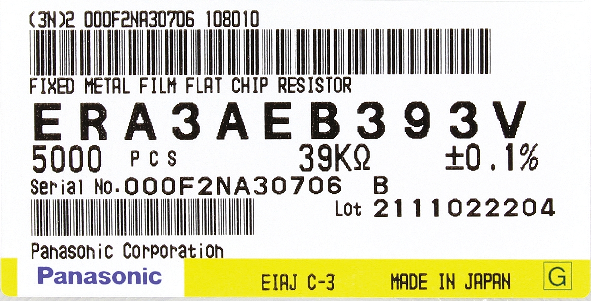 This is ERA Series Thin Film Surface Mount Fixed Resistor 0603 Case 39kΩ ±0.1% 0.1W ±25ppm/°C manufactured by Panasonic. The manufacturer part number is ERA3AEB393V. Whereas, the minimum operating temperature of the product is -55°c. The product era, is a highly preferred choice for users. It carries 39kω resistance. It exhibits an excellent temperature coefficient of ±25ppm/°c. It features ±0.1% of tolerance value. Feature 0.1w of power rating. It has a maximum operating temperature of +155°c. This product use thin film technology. Concerning its package and casing, it is 0603 (1608m).