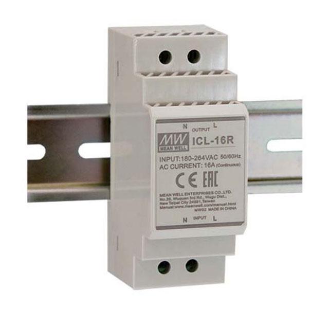 This is manufactured by MEAN WELL USA Inc.. The manufacturer part number is ICL-16R. It is assigned with possible HTSUS value of 8536.30.8000. The product is rohs3 compliant. The product has a maximum of 264vac continuous operating voltage. The product has -30°c ~ 70°c operating temperature range. It is approved by ce, eac. The product is designed as a nice module only. In addition, it is reach unaffected. It is shipped in box package . Its typical moisture sensitivity level is not applicable. It has a long 12 weeks standard lead time. The splendid features of the product include thermally protected. The product is available in din rail configuration. The product icl, is a highly preferred choice for users. It has equipped with 1 poles. The product is designated with the ear99 code number.
