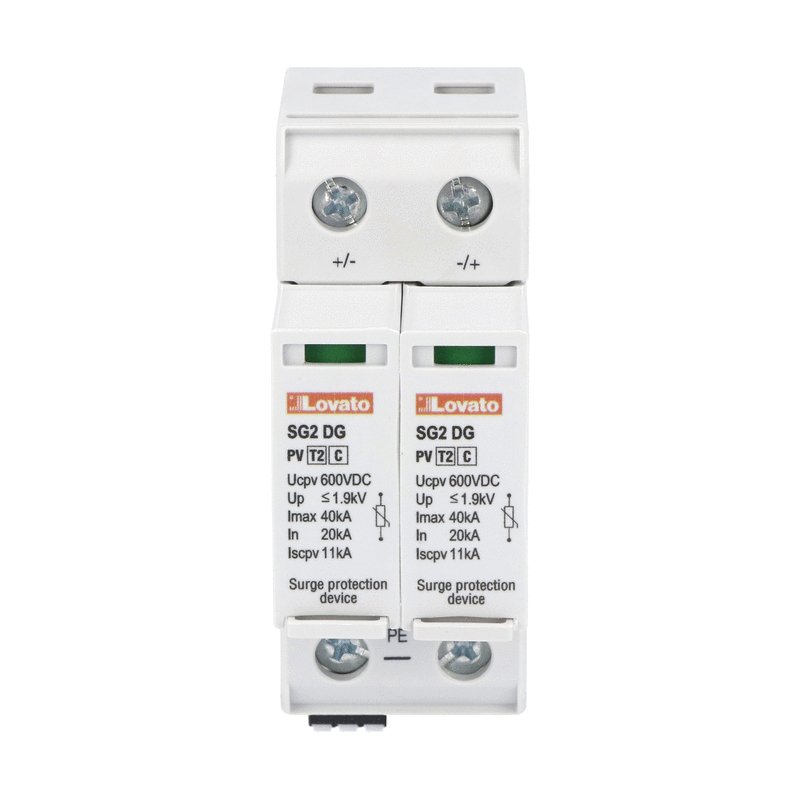 This is Single Phase Surge Protector 40kA DIN Rail Mount manufactured by Lovato. The manufacturer part number is SG2DG600M2R. The product sg2dg, is a highly preferred choice for users. The product is available in din rail style. This surge protector device is highly durable product with a variety of applications. It features type 2 range. Its electrical phase configuration includes single. It can withstand a maximum 40ka surge current .