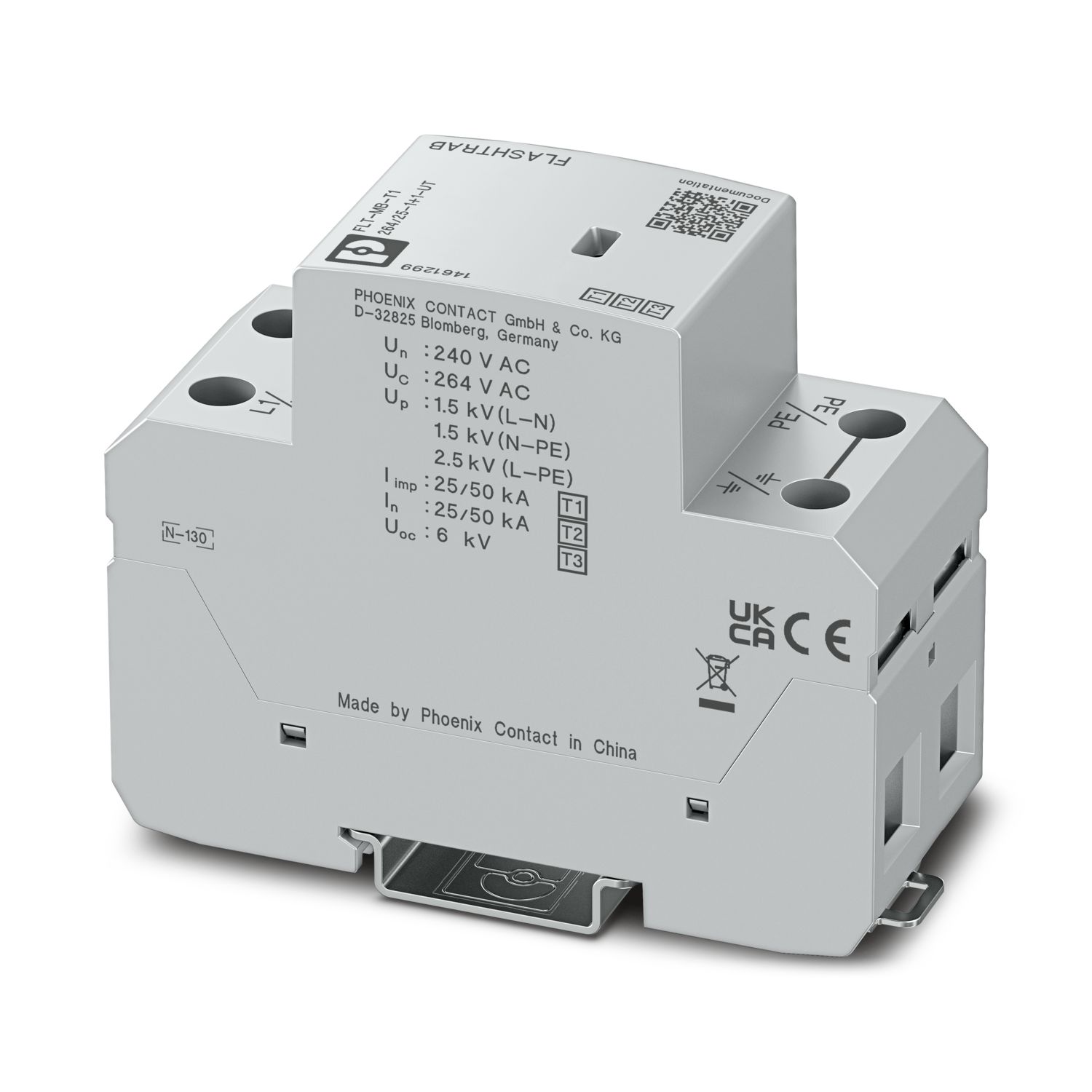 This is 1 Phase Surge Arrester 25kA 264V ac DIN Rail Mount manufactured by Phoenix Contact. The manufacturer part number is 1461299. The product flt-mb, is a highly preferred choice for users. The voltage protection rating is 264v ac . The product is available in din rail style. This surge arrestor device is highly durable product with a variety of applications. It features flt-mb range. Its electrical phase configuration includes 1. It can withstand a maximum 25ka surge current .