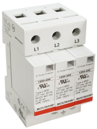 This is 600 V ac 50kA 1250 3 Pole Protector DIN Rail Mounting manufactured by Bourns. The manufacturer part number is 1250-3S-400. The given dimensions of the product include 54 x 67 x 90mm. The product is available in din rail configuration. The product 1250, is a highly preferred choice for users. Its accurate length is 54mm. In addition, the height is 90mm. The product comes in 67mm depth. Whereas, the minimum operating temperature of the product is -50°c. It has a maximum 600 v ac voltage rating. It can withstand a maximum 50ka surge current . It has a maximum operating temperature of +85°c. Its suppressor is of 3 pole protector type .