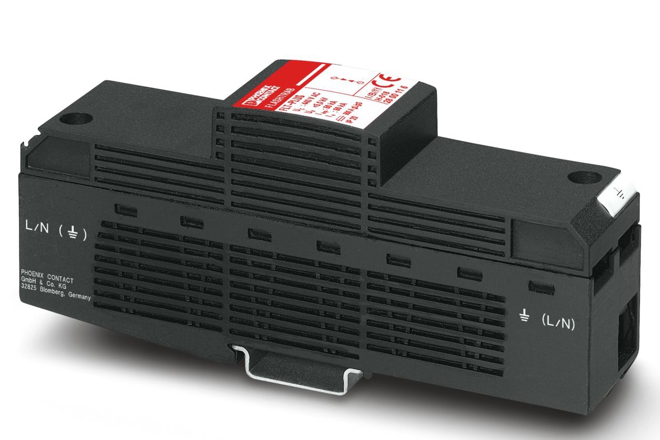 This is 440 V ac 50kA Lightning Arrester DIN Rail Mounting manufactured by Phoenix Contact. The manufacturer part number is 2800116. The given dimensions of the product include 35.5 x 65.5 x 150mm. The product is available in din rail configuration. The product flt-plus, is a highly preferred choice for users. Whereas, the minimum operating temperature of the product is -40°c. Its accurate length is 35.5mm. In addition, the height is 150mm. The product comes in 65.5mm depth. It has a maximum 440 v ac voltage rating. It can withstand a maximum 50ka surge current . It has a maximum operating temperature of +85°c. Its suppressor is of lightning arrester type .