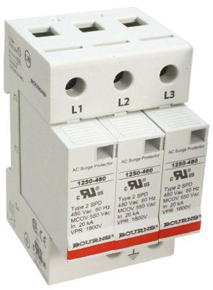 This is 600 V ac 50kA 1250 3 Pole Protector DIN Rail Mounting manufactured by Bourns. The manufacturer part number is 1250-3S-480. The given dimensions of the product include 54 x 67 x 90mm. The product is available in din rail configuration. The product 1250, is a highly preferred choice for users. Its accurate length is 54mm. In addition, the height is 90mm. The product comes in 67mm depth. Whereas, the minimum operating temperature of the product is -50°c. It has a maximum 600 v ac voltage rating. It can withstand a maximum 50ka surge current . It has a maximum operating temperature of +85°c. Its suppressor is of 3 pole protector type .