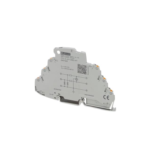 This is 30 V dc 10 (Discharge)kA TTC Surge Protection Device DIN Rail Mounting manufactured by Phoenix Contact. The manufacturer part number is 2907326. The given dimensions of the product include 69.5 x 3.5 x 106mm. The product is available in din rail configuration. The product ttc-3-2x1-24dc-pt, is a highly preferred choice for users. Its accurate length is 69.5mm. In addition, the height is 106mm. The product comes in 3.5mm depth. Whereas, the minimum operating temperature of the product is -40°c. It has a maximum 30 v dc voltage rating. It can withstand a maximum 10ka surge current . It has a maximum operating temperature of +85°c. Its suppressor is of surge protection device type . The product also features robust plastic housing material. It is approved by ccsaus, csa, csaus, ul. It comes in pdu, surge protector configuration. The phoenix contact's product offers user-desired applications. The product is utilised in various regions, including international. Overload Protected- fuse holder. It has a long 10 weeks standard lead time. The product ttc, is a highly preferred choice for users. In addition, bulk is the available packaging type of the product.