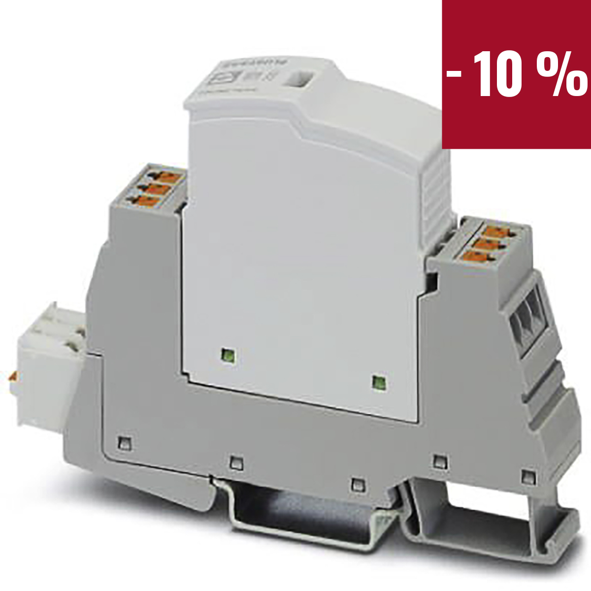 This is Surge Suppressor Din Raid Push Fit PLT-S manufactured by Phoenix Contact. The manufacturer part number is 2907928. The given dimensions of the product include 17.7 x 74.5 x 101mm. The product is available in din rail configuration. The product plt-sec-t3-230-fm-pt, is a highly preferred choice for users. Whereas, the minimum operating temperature of the product is -40°c. Its accurate length is 17.7mm. In addition, the height is 101mm. The product comes in 74.5mm depth. It has a maximum 240 v ac/dc voltage rating. It can withstand a maximum 0.026ka surge current . It has a maximum operating temperature of +80°c. Its suppressor is of type 3 surge protection device type .