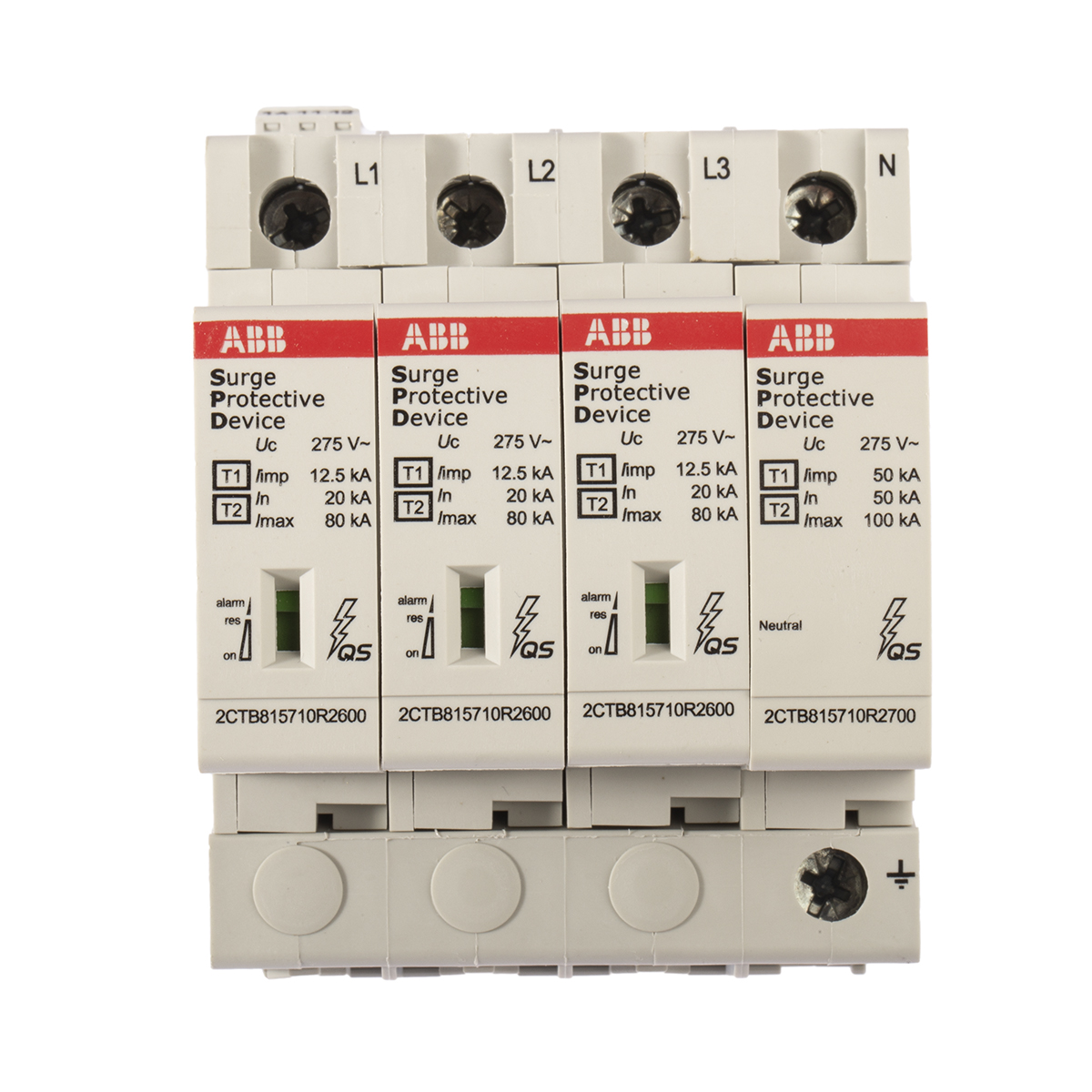 This is OVR 275 V Maximum Voltage Rating 80kA Maximum Surge Current Surge Protection Device DIN Rail manufactured by ABB. The manufacturer part number is 2CTB815710R0700 OVR T1-T2 3N 12.5-275s P TS QS. The given dimensions of the product include 71.2 x 76.7 x 95.8mm. The product is available in din rail configuration. The product ovr, is a highly preferred choice for users. Its accurate length is 71.2mm. In addition, the height is 95.8mm. The product comes in 76.7mm depth. Whereas, the minimum operating temperature of the product is -40°c. It has a maximum 275 v voltage rating. It can withstand a maximum 80ka surge current . It has a maximum operating temperature of +80°c. Its suppressor is of surge protection device type .