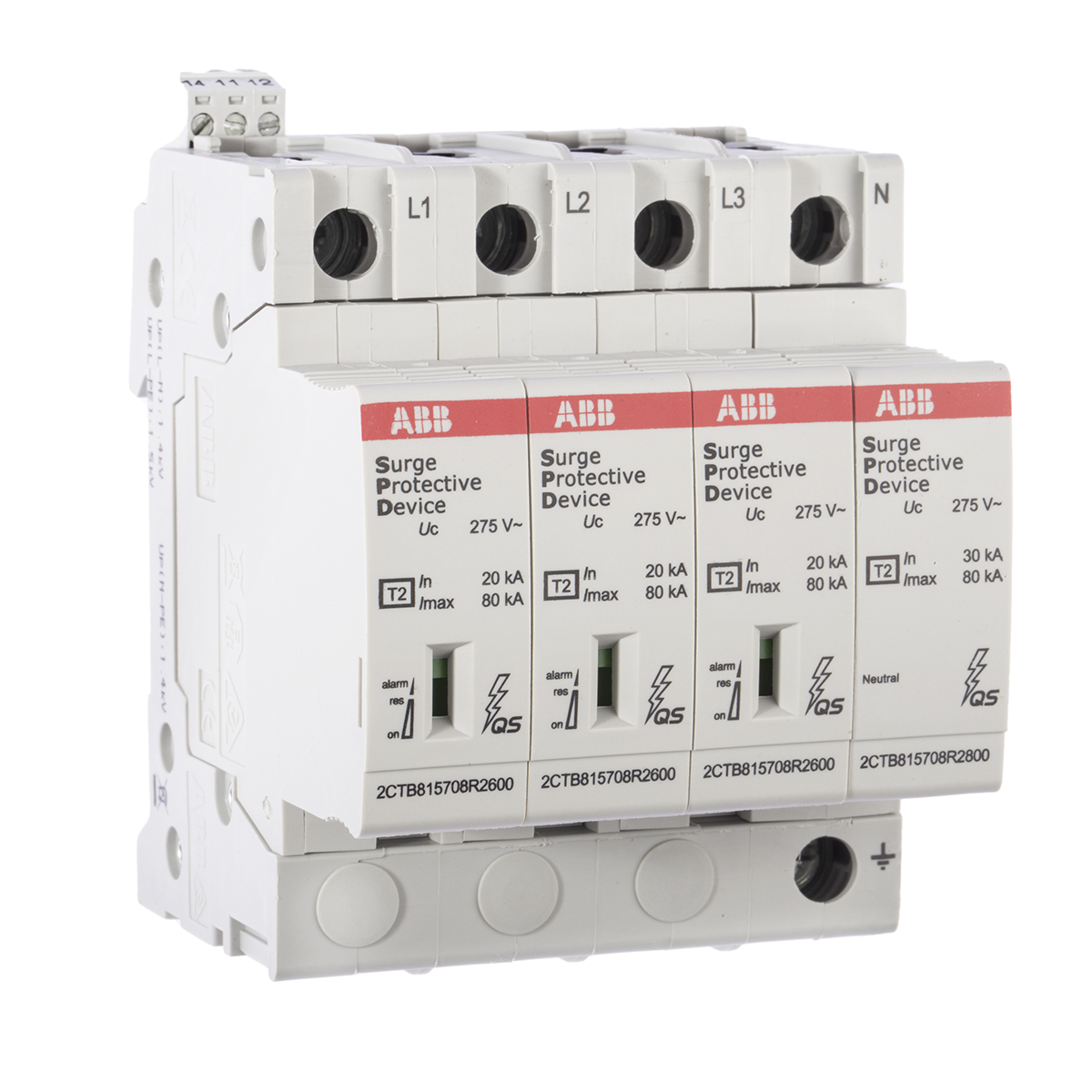 This is OVR 275 V Maximum Voltage Rating 80kA Maximum Surge Current Surge Protection Device DIN Rail manufactured by ABB. The manufacturer part number is 2CTB815708R0800 OVR T2 3N 80-275s P TS QS. The given dimensions of the product include 71.2 x 76.7 x 95.8mm. The product is available in din rail configuration. The product ovr, is a highly preferred choice for users. Its accurate length is 71.2mm. In addition, the height is 95.8mm. The product comes in 76.7mm depth. Whereas, the minimum operating temperature of the product is -40°c. It has a maximum 275 v voltage rating. It can withstand a maximum 80ka surge current . It has a maximum operating temperature of +80°c. Its suppressor is of surge protection device type .