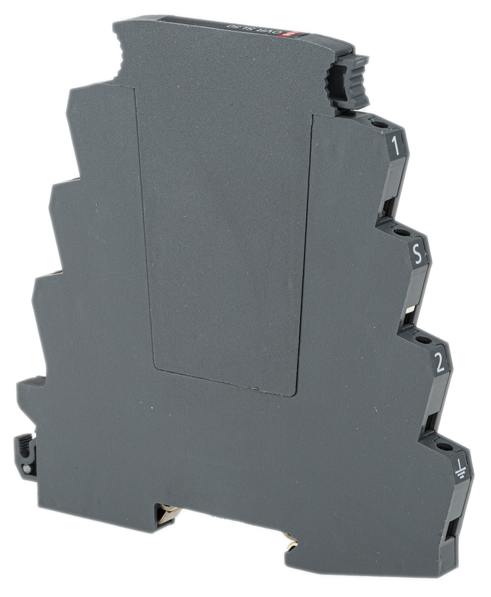 This is OVR 56.7 V Maximum Voltage Rating 20kA Maximum Surge Current Surge Protection Device DIN Rail manufactured by ABB. The manufacturer part number is 7TCA085400R0364 OVR SL50. The given dimensions of the product include 106.5 x 7 x 104.6mm. The product is available in din rail configuration. The product ovr, is a highly preferred choice for users. Its accurate length is 106.5mm. In addition, the height is 104.6mm. The product comes in 7mm depth. Whereas, the minimum operating temperature of the product is -40°c. It has a maximum 56.7 v voltage rating. It can withstand a maximum 20ka surge current . It has a maximum operating temperature of +80°c. Its suppressor is of surge protection device type .