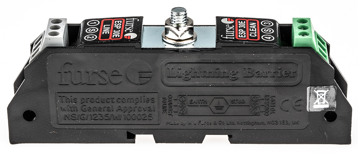 This is ESP E 36.7 V Maximum Voltage Rating 5kA Maximum Surge Current Twisted Pair Surge Protector DIN Rail manufactured by WJ Furse. The manufacturer part number is 7TCA085400R0104 ESP 30E. The given dimensions of the product include 120 x 54 x 19mm. The product is available in din rail configuration. The product esp e, is a highly preferred choice for users. Its accurate length is 120mm. In addition, the height is 54mm. The product comes in 19mm depth. Whereas, the minimum operating temperature of the product is -25°c. It has a maximum 36.7 v voltage rating. It can withstand a maximum 5 ka, 20ka surge current . It has a maximum operating temperature of +70°c. Its suppressor is of twisted pair surge protector type .