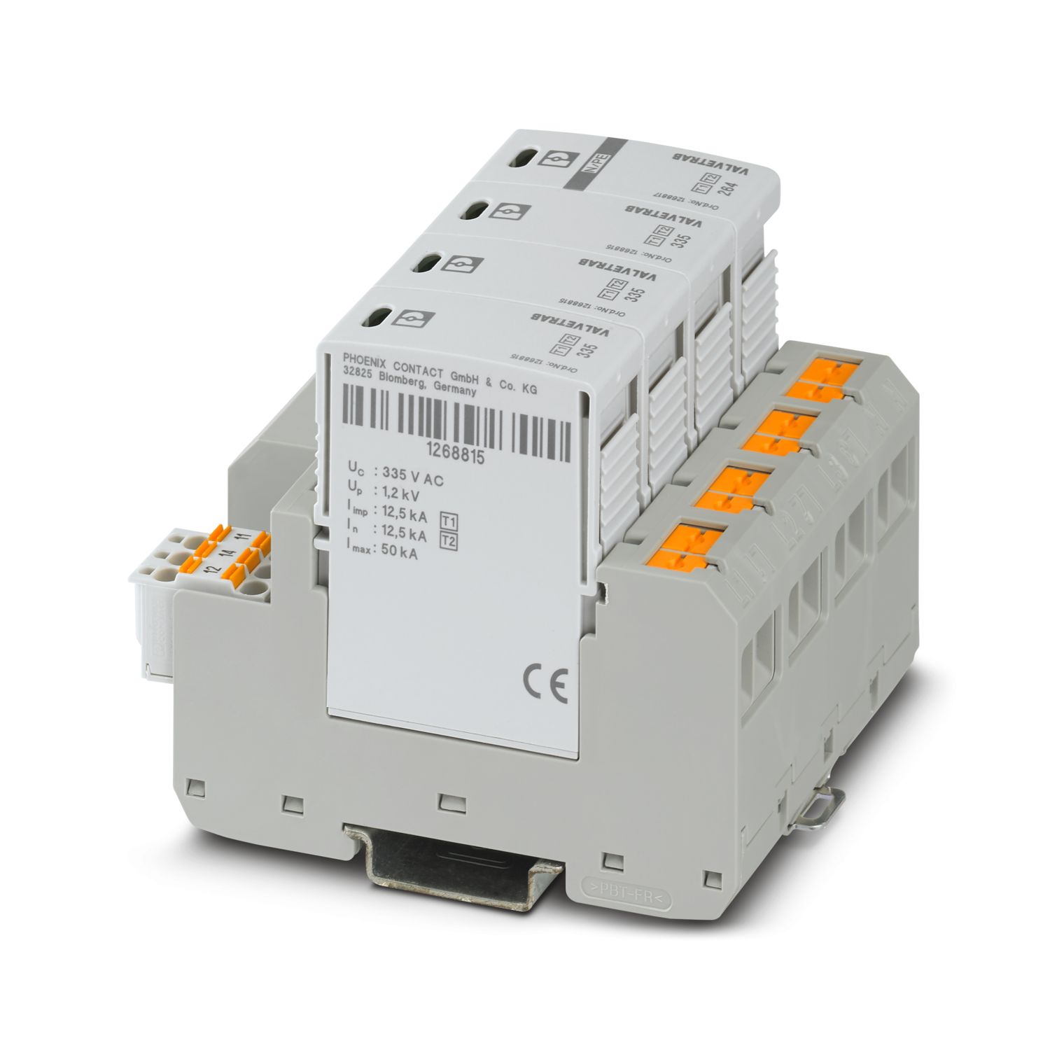 This is VAL-MS Lightning / Surge Arrester 335 V ac Maximum Voltage Rating Lightning Arrester Surge Arrester manufactured by Phoenix Contact. The manufacturer part number is 1266417. The product val-ms, is a highly preferred choice for users. It has a maximum 335 v ac voltage rating. The product is available in din rail configuration. Its suppressor is of lightning arrester, surge arrester type .