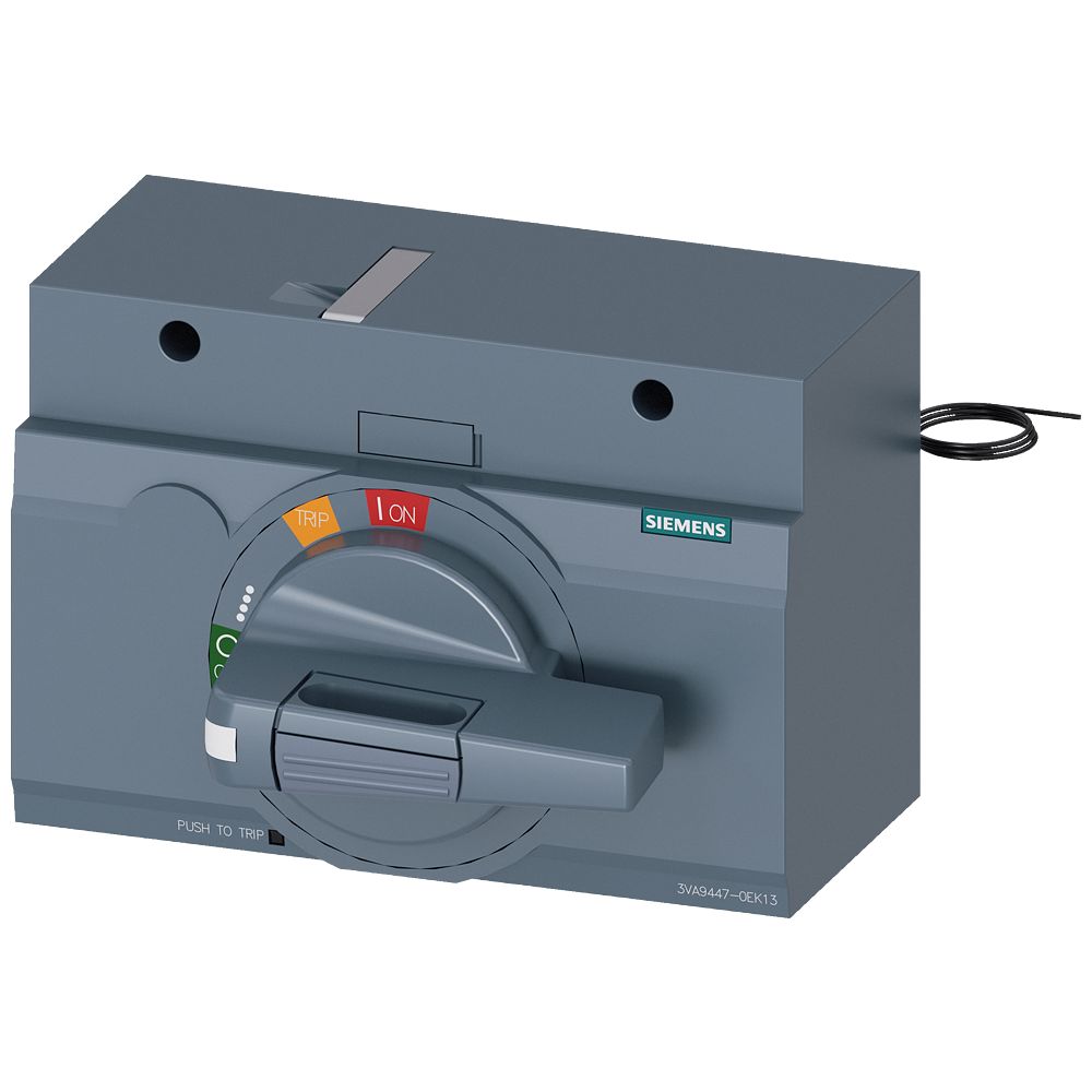 This is SENTRON Front Mounted Rotary Operator manufactured by Siemens. The manufacturer part number is 3VA9447-0EK13. The product sentron, is a highly preferred choice for users. It has a decent grey colour. It is a type of front mounted rotary operator accessory. It has an operating voltage about 24v .
