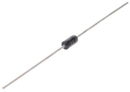 This is ON Semi Diode 100V 1A 2-Pin DO-41 manufactured by ON Semiconductor. The manufacturer part number is 1N4002G. Its diameter is 2.7mm. The given dimensions of the product include 2.7 (dia.) x 5.2mm. The product is available in through hole configuration. It has a maximum operating temperature of +175 °c. It features 1.1v of maximum forward voltage drop. In addition, the height is 5.2mm. The product utilizes silicon junction diode technology. The package is a sort of do-41. It consists of 1 elements per chip. Whereas, the minimum operating temperature of the product is -65 °c. The diode features a single configuration. It contains 2 pins.