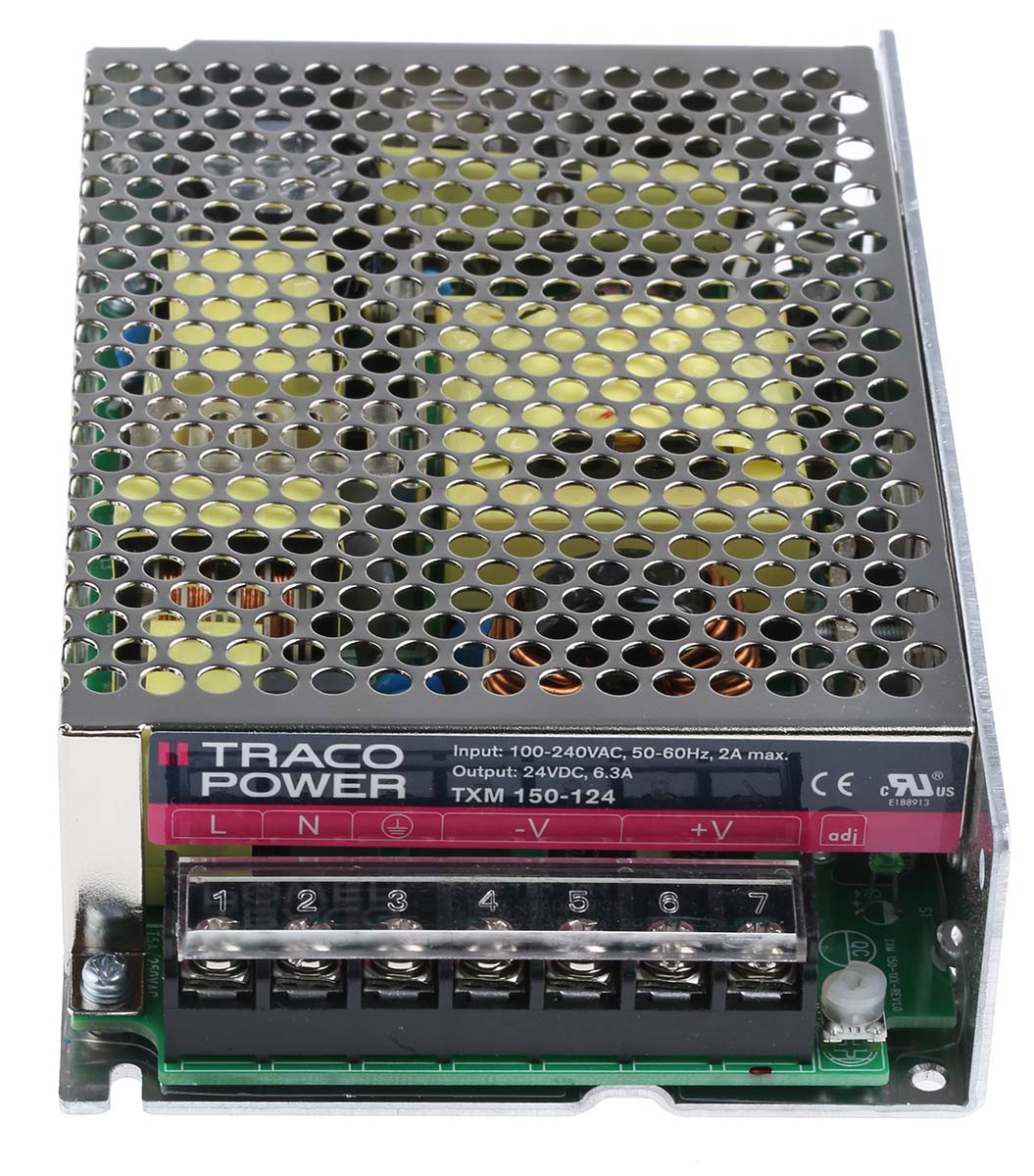 This is 150W Embedded Switch Mode Power Supply SMPS 6.3A 24V dc manufactured by TRACOPOWER. The manufacturer part number is TXM 150-124. Additionally, the product is supplied with 1 outputs. The product has +60°c maximum temperature. The product is available in chassis mount configuration. The typical product's weight is 625g. It is a highly efficient product with an 87% of high efficiency. The product txm 150, is a highly preferred choice for users. Its accurate length is 179mm. Furthermore, the product is 99mm wide. The product comes in 50mm depth. Its input voltage is 90 → 264v ac. The package is a sort of enclosed. Features a 24v dc output voltage. While its minimum temperature is -10°c. Feature 150w of power rating. It carries 6.3a output current.