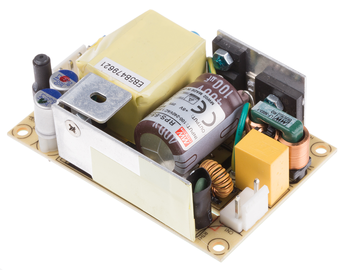 This is 50W Embedded Switch Mode Power Supply SMPS 10A 5V dc manufactured by Mean Well. The manufacturer part number is RPS-65-5. Additionally, the product is supplied with 1 outputs. The product has +70°c maximum temperature. The product is available in pcb mount configuration. The typical product's weight is 110g. While its minimum temperature is -30°c. Its accurate length is 76.2mm. Furthermore, the product is 50.8mm wide. The product comes in 24mm depth. Its input voltage is 80 → 264v ac. The package is a sort of open frame. Medical Approval - yes. Features a 5v dc output voltage. Feature 50w of power rating. It carries 10a output current.
