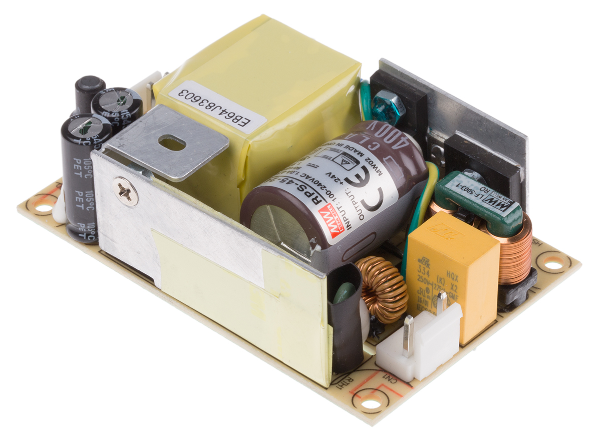 This is 45.6W Embedded Switch Mode Power Supply SMPS 0 → 2.1A 24V dc manufactured by Mean Well. The manufacturer part number is RPS-45-24. Additionally, the product is supplied with 1 outputs. The product has +70°c maximum temperature. The product is available in pcb mount configuration. The typical product's weight is 110g. While its minimum temperature is -30°c. Its accurate length is 76.2mm. Furthermore, the product is 50.8mm wide. The product comes in 24mm depth. Its input voltage is 80 → 264v ac. The package is a sort of open frame. Medical Approval - yes. Features a 24v dc output voltage. Feature 45.6w of power rating. It carries 1.9a output current.