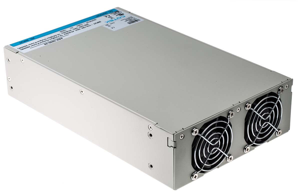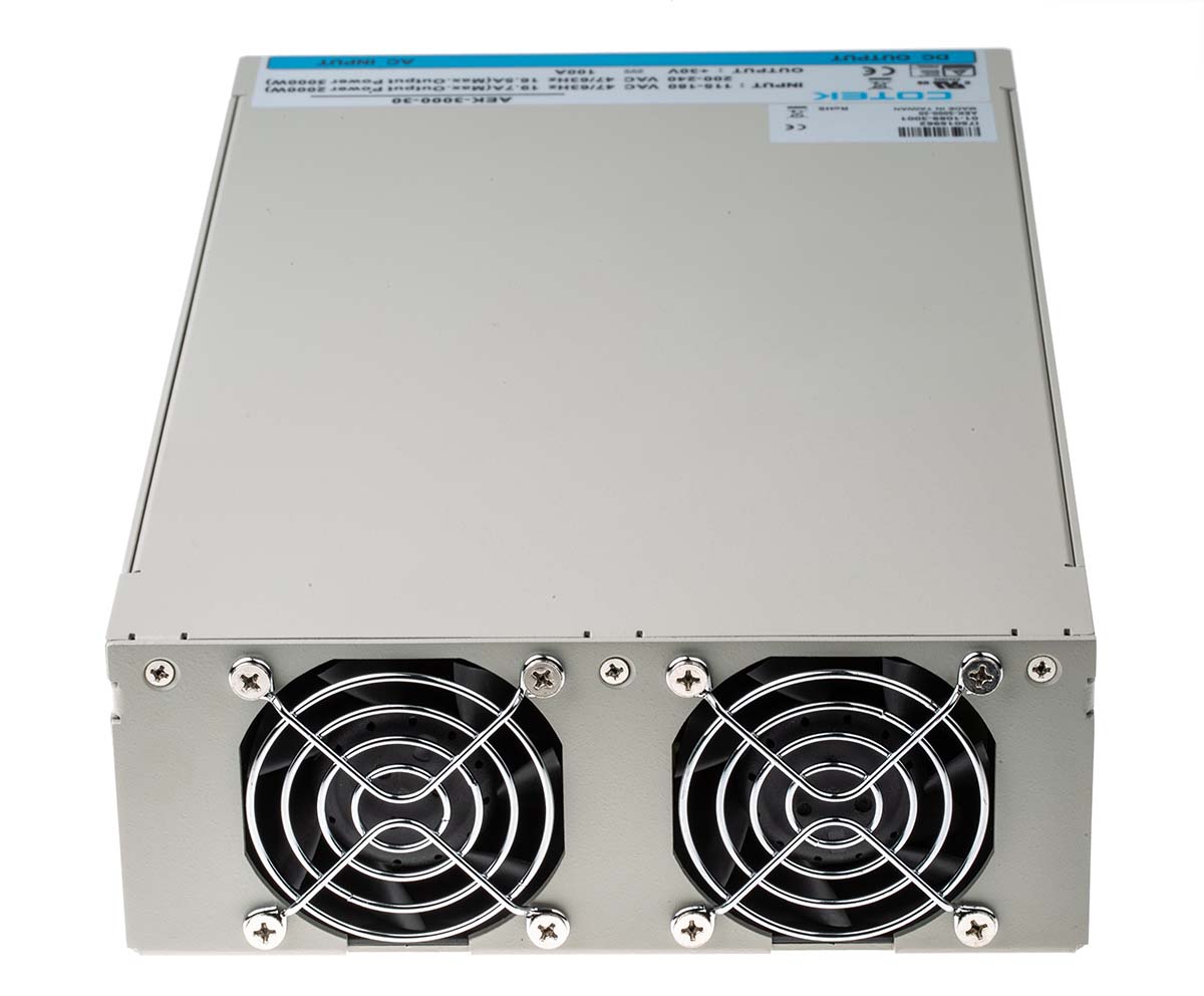 This is 3000W Embedded Switch Mode Power Supply SMPS 100A 30V dc manufactured by COTEK. The manufacturer part number is AEK-3000-30. Additionally, the product is supplied with 1 outputs. The product has +60°c maximum temperature. The product is available in rack mount configuration. The typical product's weight is 3.8kg. It is a highly efficient product with an 91% of high efficiency. While its minimum temperature is -20°c. Its accurate length is 170mm. Furthermore, the product is 63.5mm wide. The product comes in 280mm depth. Its input voltage is 127 → 370 v dc, 90 → 264 v ac. The package is a sort of enclosed. Features a 30v dc output voltage. Feature 3kw of power rating. It carries 100a output current.