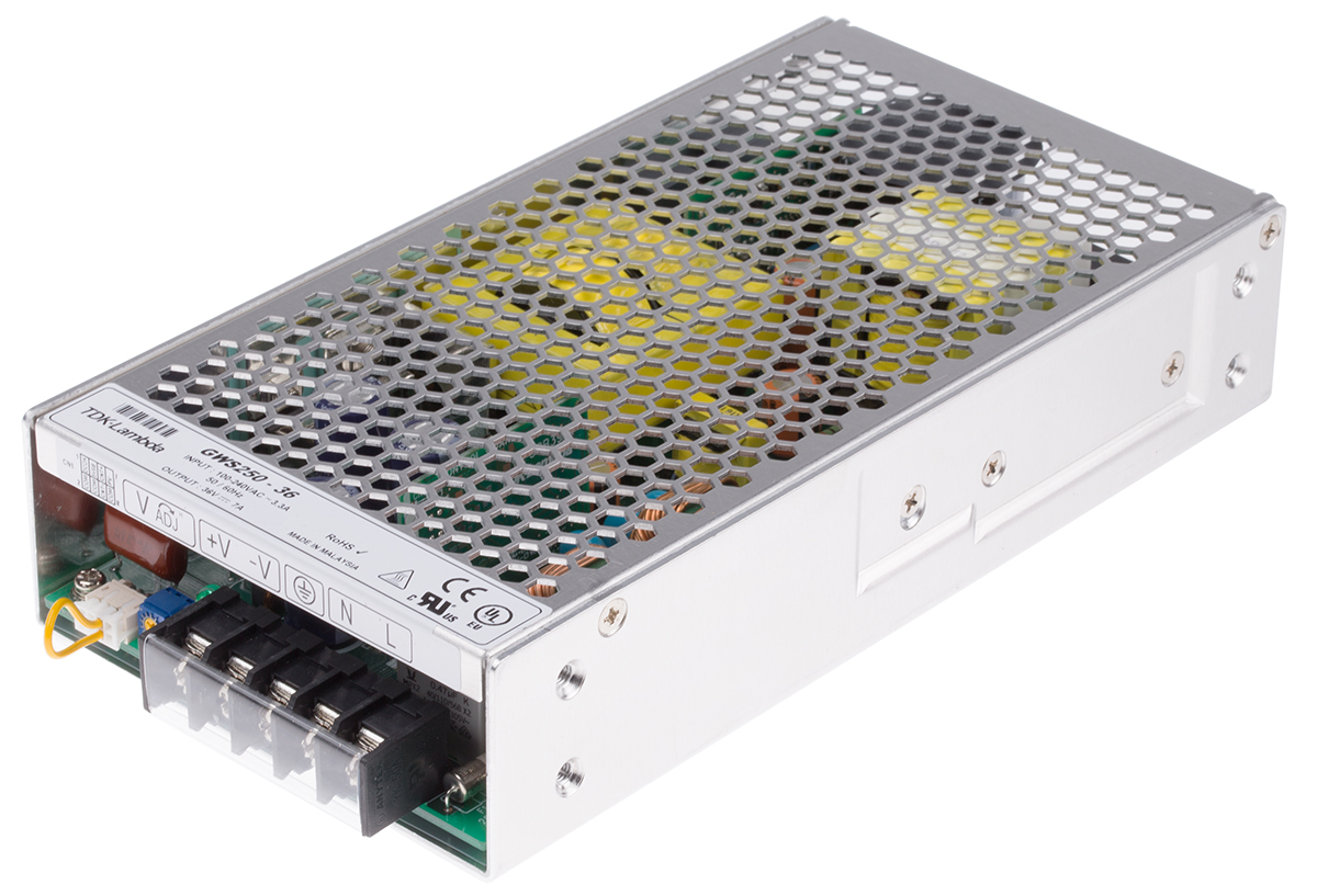 This is 252W Embedded Switch Mode Power Supply SMPS 7A 36V dc manufactured by TDK-Lambda. The manufacturer part number is GWS250-36. Additionally, the product is supplied with 1 outputs. The product has +70°c maximum temperature. The product is available in chassis mount configuration. The typical product's weight is 850g. Furthermore, the product is 105mm wide. While its minimum temperature is -25°c. Its accurate length is 198mm. It is a highly efficient product with an 93% of high efficiency. The product comes in 41mm depth. Its input voltage is 120 → 373 v dc, 85 → 265 v ac. The package is a sort of enclosed. Features a 36v dc output voltage. Feature 252w of power rating. It carries 7a output current.