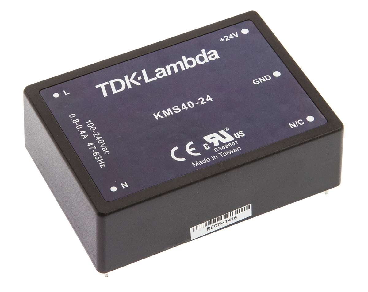This is 40W Embedded Switch Mode Power Supply SMPS 1.67A 24V Medical Approved manufactured by TDK-Lambda. The manufacturer part number is KMS40-24. Additionally, the product is supplied with 1 outputs. The product has +70°c maximum temperature. The product is available in pcb mount configuration. The typical product's weight is 280g. While its minimum temperature is -25°c. Its accurate length is 89mm. Furthermore, the product is 63.5mm wide. The product comes in 27mm depth. Its input voltage is 100 → 375 v dc, 90 → 264 v ac. The package is a sort of encapsulated. Medical Approval - yes. Features a 24v dc output voltage. Feature 40w of power rating. It carries 1.67a output current.