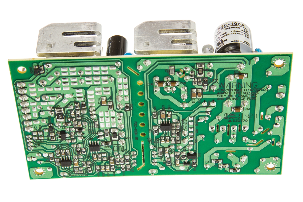 This is 100.05W Embedded Switch Mode Power Supply SMPS 2.5 A 4.75 A 13.8V dc manufactured by Mean Well. The manufacturer part number is PSC-100A. Additionally, the product is supplied with 2 outputs. The product has +70°c maximum temperature. The product is available in chassis mount configuration. The typical product's weight is 230g. While its minimum temperature is -20°c. Its accurate length is 127mm. Furthermore, the product is 76.2mm wide. The product comes in 31mm depth. Its input voltage is 127 → 370 v dc, 90 → 264 v ac. The package is a sort of open frame. Features a 13.8v dc output voltage. Feature 100w of power rating. It carries 2.5 a, 4.75 a output current.