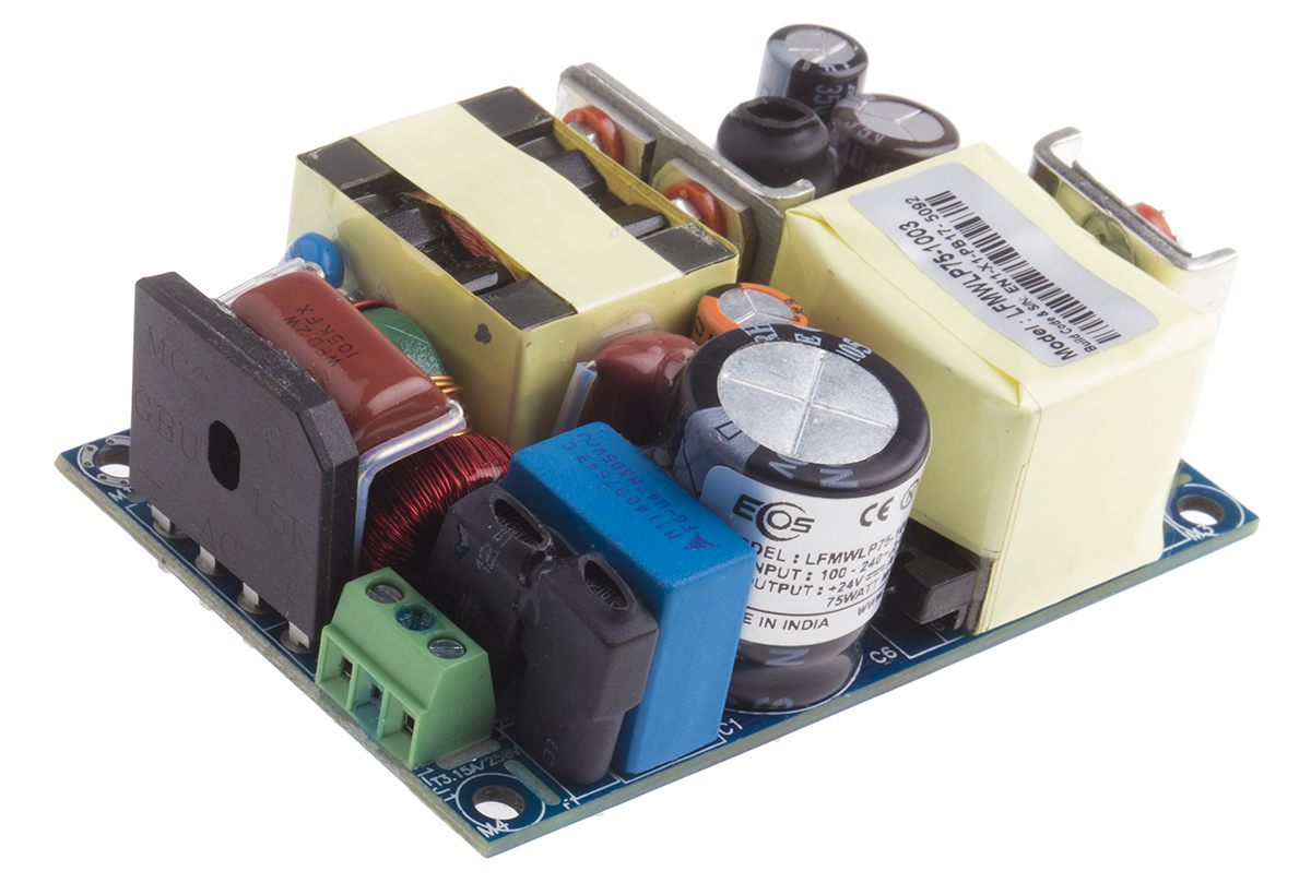This is 75W Embedded Switch Mode Power Supply SMPS 3.12A 24V dc Medical Approved manufactured by EOS. The manufacturer part number is LFMWLP75-1003. Additionally, the product is supplied with 1 outputs. The product has +70°c maximum temperature. It carries 3.12a output current. The product is available in chassis mount configuration. While its minimum temperature is -40°c. Its accurate length is 76.2mm. Furthermore, the product is 50.8mm wide. The product comes in 25.4mm depth. Its input voltage is 390 v dc, 85 → 264 v ac. The package is a sort of open frame. Features a 24v dc output voltage. Feature 75w of power rating. Medical Approval - yes.