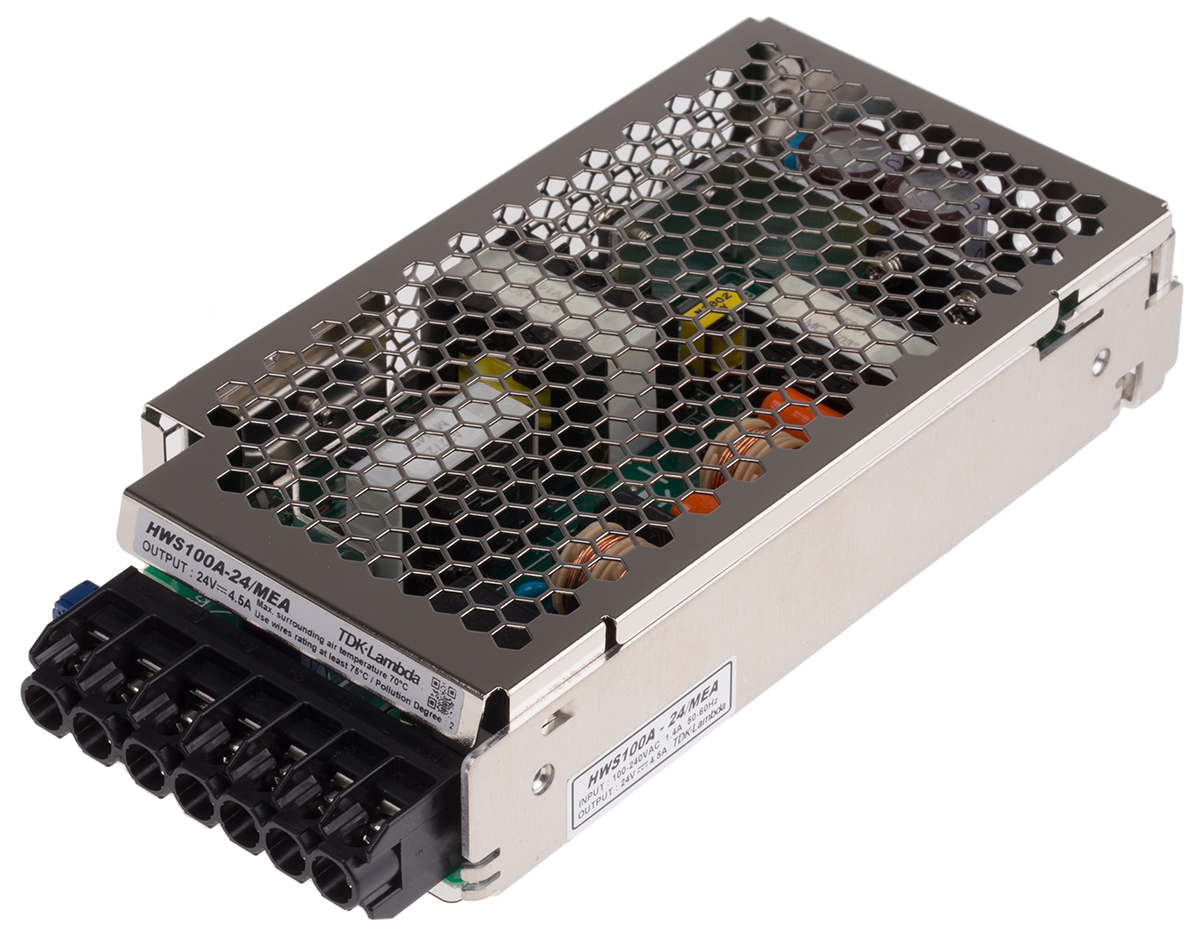 This is 108W Embedded Switch Mode Power Supply SMPS 4.5A 24V dc Medical Approved manufactured by TDK-Lambda. The manufacturer part number is HWS-100A-24/ME/A. Additionally, the product is supplied with 1 outputs. The product has +70°c maximum temperature. The product is available in chassis mount configuration. The typical product's weight is 450g. While its minimum temperature is -10°c. Its accurate length is 160mm. Furthermore, the product is 82mm wide. The product comes in 28mm depth. Its input voltage is 120 → 370 v dc, 85 → 265 v ac. The package is a sort of open frame. Medical Approval - yes. Features a 24v dc output voltage. Feature 108w of power rating. It carries 4.5a output current.