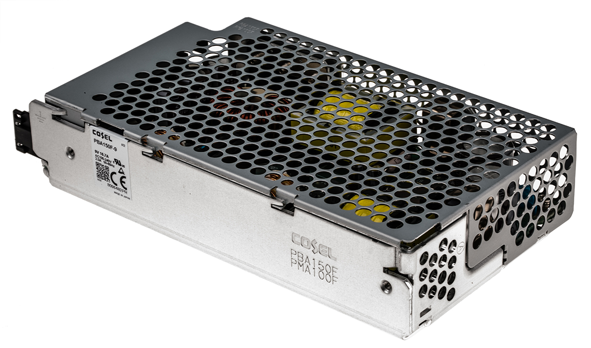 This is 150W Embedded Switch Mode Power Supply SMPS 16.7A 9V dc manufactured by Cosel. The manufacturer part number is PBA150F-9-N. Additionally, the product is supplied with 1 outputs. The product has +71°c maximum temperature. The product is available in chassis mount configuration. The typical product's weight is 560g. It is a highly efficient product with an 82 %, 85 % of high efficiency. While its minimum temperature is -10°c. Its accurate length is 181.5mm. Furthermore, the product is 37.5mm wide. The product comes in 93.5mm depth. Its input voltage is 120 → 370 v dc, 85 → 264 v ac. The package is a sort of enclosed. Features a 9v dc output voltage. Feature 150w of power rating. It carries 16.7a output current.