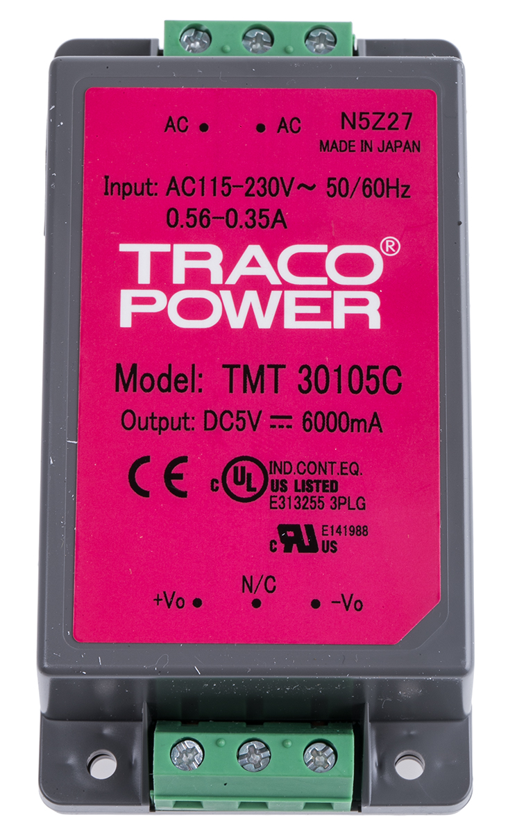 This is 30W Embedded Switch Mode Power Supply SMPS 6A 5V dc Medical Approved manufactured by TRACOPOWER. The manufacturer part number is TMT 30105C. Additionally, the product is supplied with 1 outputs. The product has +50°c maximum temperature. Embedding Options: no. The typical product's weight is 180g. It is a highly efficient product with an 83% of high efficiency. The product tmt, is a highly preferred choice for users. Its accurate length is 96mm. Furthermore, the product is 51mm wide. The product comes in 29.5mm depth. Its input voltage is 85 → 264 v ac, 85 → 370 v dc. The package is a sort of encapsulated. Medical Approval - yes. Features a 5v dc output voltage. While its minimum temperature is -25°c. The product is available in chassis mount configuration. Feature 30w of power rating. It carries 6a output current.