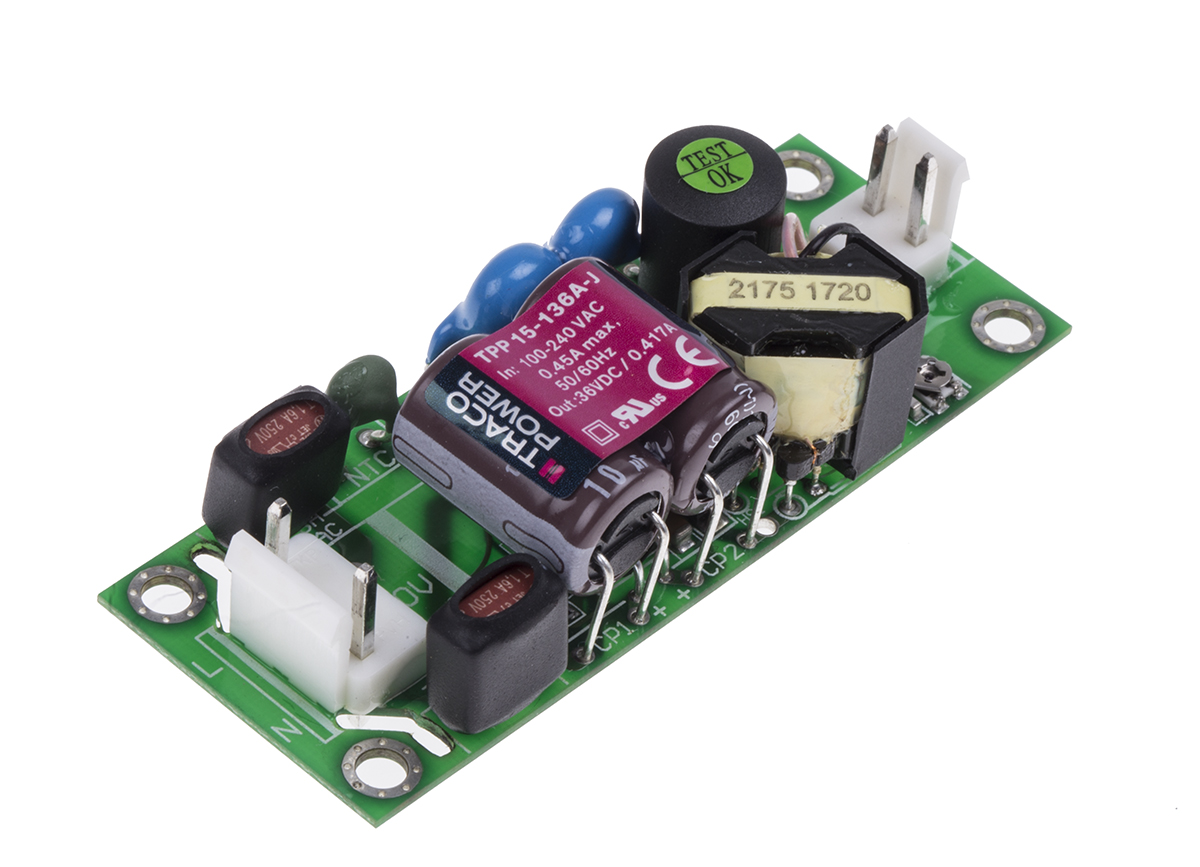 This is 15W Embedded Switch Mode Power Supply SMPS 0.41A 36V dc Medical Approved manufactured by TRACOPOWER. The manufacturer part number is TPP 15-136A-J. Additionally, the product is supplied with 1 outputs. The product has +85°c maximum temperature. The product is available in chassis mount configuration. The typical product's weight is 19g. While its minimum temperature is -40°c. Its accurate length is 66.2mm. Furthermore, the product is 25.4mm wide. The product comes in 15.7mm depth. Its input voltage is 120 → 370 v dc, 85 → 264 v ac. The package is a sort of open frame. Medical Approval - yes. Features a 36v dc output voltage. Feature 15w of power rating. Furthermore, its energy efficiency level is iii . It carries 410ma output current.