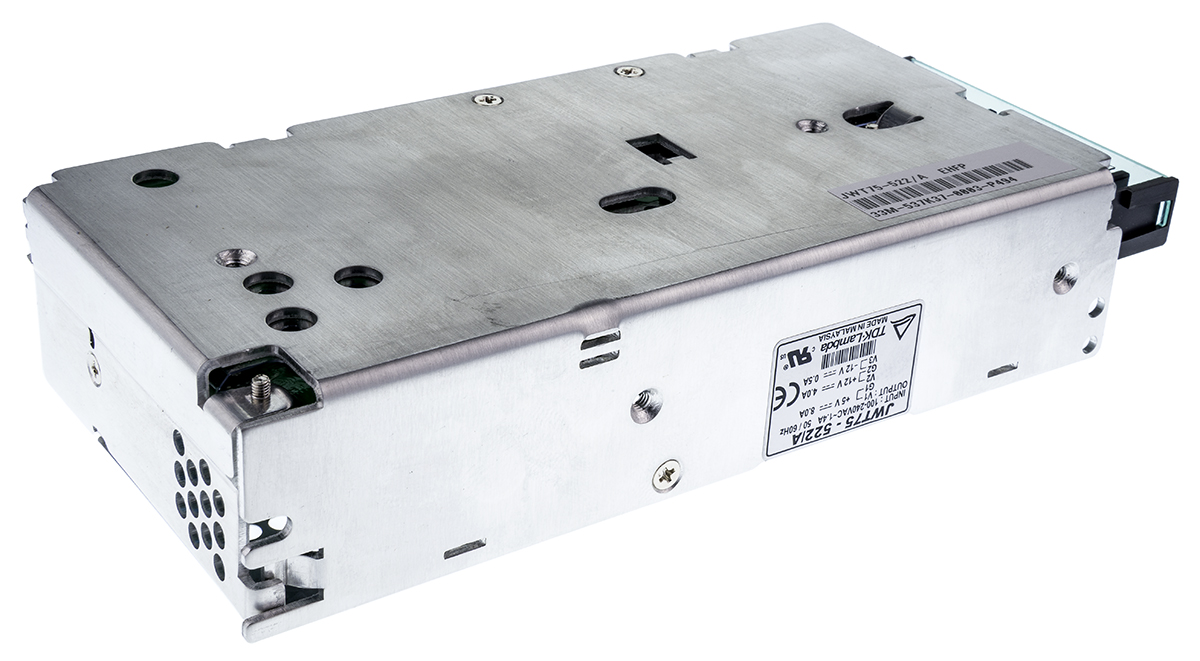 This is 75W Triple Output Embedded Switch Mode Power Supply SMPS 4 A 8 A 500 mA 5/±12V dc manufactured by TDK-Lambda. The manufacturer part number is JWT75-522/A. Additionally, the product is supplied with 3 outputs. The product has +50°c maximum temperature. The product is available in chassis mount configuration. The typical product's weight is 600g. Furthermore, the product is 92mm wide. While its minimum temperature is -10°c. Its accurate length is 188mm. It is a highly efficient product with an 72% of high efficiency. The product comes in 42mm depth. Its input voltage is 120 → 330 v dc, 85 → 265 v ac. The package is a sort of enclosed. Features a 5 v dc, ±12 v dc output voltage. Feature 75w of power rating. It carries 4 a, 8 a, 500 ma output current.