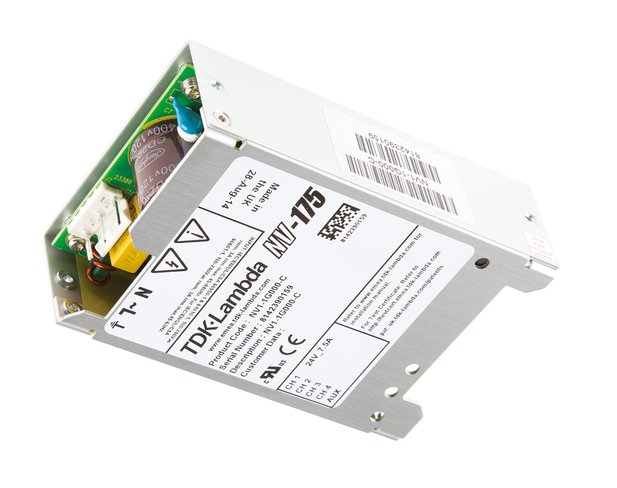 This is 175W Embedded Switch Mode Power Supply SMPS 7.5A 24V dc Medical Approved manufactured by TDK-Lambda. The manufacturer part number is NV1-1G000-C. Additionally, the product is supplied with 1 outputs. The product has +70°c maximum temperature. The product is available in chassis mount configuration. The typical product's weight is 250g. While its minimum temperature is 0°c. Its accurate length is 127mm. Furthermore, the product is 76mm wide. The product comes in 31.75mm depth. Its input voltage is 90 → 264v ac. The package is a sort of enclosed. Medical Approval - yes. Features a 24v dc output voltage. Feature 175w of power rating. It carries 7.5a output current.