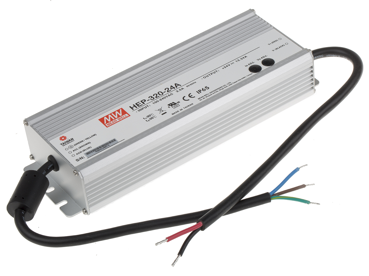This is 320W Embedded Switch Mode Power Supply SMPS 13.34A 24V dc manufactured by Mean Well. The manufacturer part number is HEP-320-24A. Additionally, the product is supplied with 1 outputs. The product has +70°c maximum temperature. The product is available in chassis mount configuration. The typical product's weight is 1.9kg. It is a highly efficient product with an 94% of high efficiency. While its minimum temperature is -55°c. Its accurate length is 252mm. Furthermore, the product is 90mm wide. The product comes in 43.8mm depth. Its input voltage is 127 → 431 v dc, 90 → 305 v ac. The package is a sort of enclosed. Features a 24v dc output voltage. Feature 320w of power rating. It carries 13.34a output current.