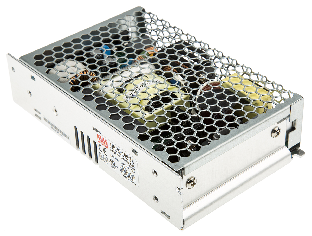 This is 156W Embedded Switch Mode Power Supply SMPS 13A 12V dc manufactured by Mean Well. The manufacturer part number is HRPG-150-12RS. Additionally, the product is supplied with 1 outputs. The product has +70°c maximum temperature. The product is available in chassis mount configuration. The typical product's weight is 630g. Furthermore, the product is 97mm wide. While its minimum temperature is -30°c. Its accurate length is 159mm. It is a highly efficient product with an 87% of high efficiency. The product comes in 38mm depth. Its input voltage is 120 → 370 v dc, 85 → 264 v ac. The package is a sort of enclosed. Features a 12v dc output voltage. Feature 156w of power rating. It carries 13a output current.