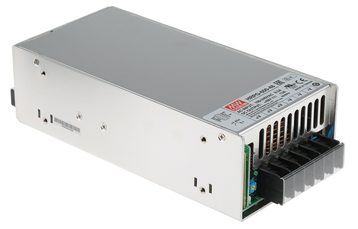 This is 624W Embedded Switch Mode Power Supply SMPS 13A 48V dc manufactured by Mean Well. The manufacturer part number is HRPG-600-48RS. Additionally, the product is supplied with 1 outputs. The product has +70°c maximum temperature. The product is available in chassis mount configuration. The typical product's weight is 1.6kg. It is a highly efficient product with an 89% of high efficiency. While its minimum temperature is -40°c. Its accurate length is 218mm. Furthermore, the product is 105mm wide. The product comes in 63.5mm depth. Its input voltage is 120 → 370 v dc, 85 → 264 v ac. The package is a sort of enclosed. Features a 48v dc output voltage. Feature 624w of power rating. It carries 13a output current.