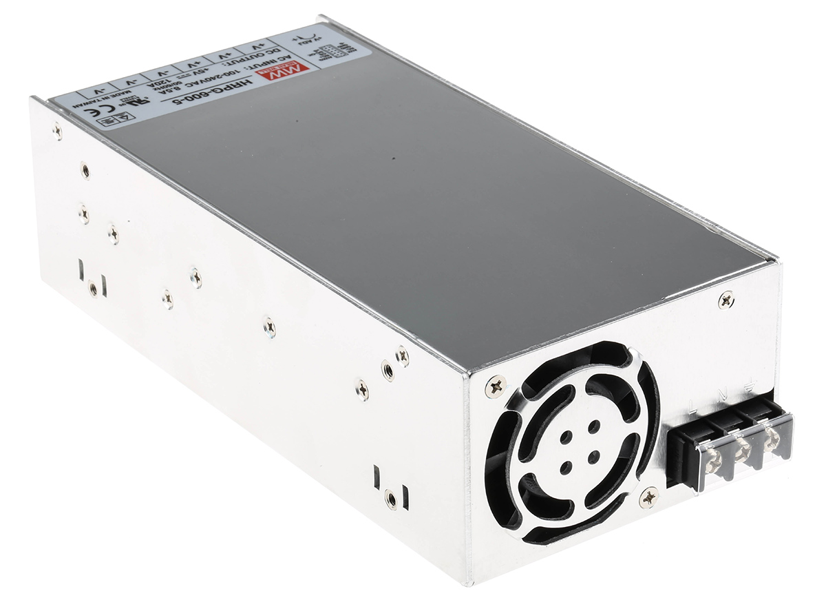 This is 600W Embedded Switch Mode Power Supply SMPS 120A 5V dc manufactured by Mean Well. The manufacturer part number is HRPG-600-5RS. Additionally, the product is supplied with 1 outputs. The product has +70°c maximum temperature. The product is available in chassis mount configuration. The typical product's weight is 1.6kg. It is a highly efficient product with an 82% of high efficiency. While its minimum temperature is -40°c. Its accurate length is 218mm. Furthermore, the product is 105mm wide. The product comes in 63.5mm depth. Its input voltage is 120 → 370 v dc, 85 → 264 v ac. The package is a sort of enclosed. Features a 5v dc output voltage. Feature 600w of power rating. It carries 120a output current.