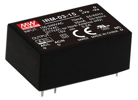This is 3W Encapsulated Switch Mode Power Supply 0 → 200mA 15V dc manufactured by Mean Well. The manufacturer part number is IRM-03-15. Additionally, the product is supplied with 1 outputs. The product has +85°c maximum temperature. The product is available in pcb mount configuration. The typical product's weight is 20g. Furthermore, the product is 24mm wide. While its minimum temperature is -30°c. Its accurate length is 37mm. It is a highly efficient product with an 78% of high efficiency. The product comes in 15mm depth. Its input voltage is 120 → 430 v dc, 85 → 305 v ac. The package is a sort of encapsulated. Features a 15v dc output voltage. Feature 3w of power rating. It carries 200ma output current.