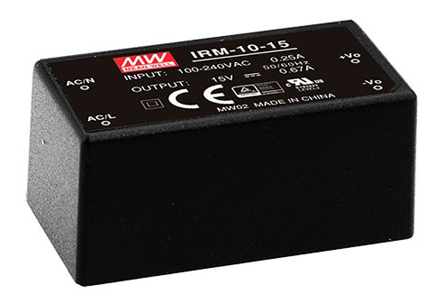 This is 10W Encapsulated Switch Mode Power Supply 0 → 670mA 15V dc manufactured by Mean Well. The manufacturer part number is IRM-10-15. Additionally, the product is supplied with 1 outputs. The product has +70°c maximum temperature. The product is available in pcb mount configuration. The typical product's weight is 40g. Furthermore, the product is 25.4mm wide. While its minimum temperature is -30°c. Its accurate length is 45.7mm. It is a highly efficient product with an 82% of high efficiency. The product comes in 21.5mm depth. Its input voltage is 120 → 370 v dc, 85 → 264 v ac. The package is a sort of encapsulated. Features a 15v dc output voltage. Feature 10w of power rating. It carries 670ma output current.
