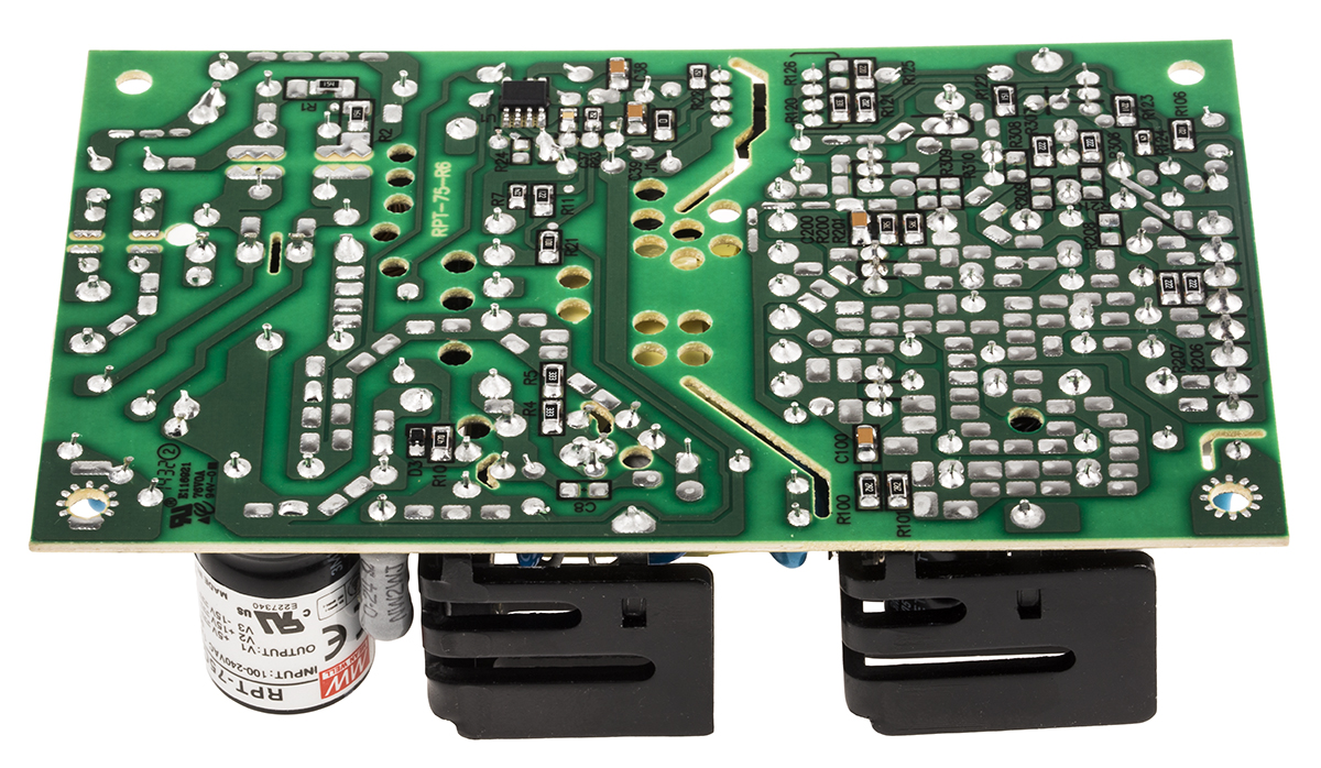 This is 72W Triple Output Embedded Switch Mode Power Supply SMPS 2.3 A 6 A 500 mA 5/±15V dc Medical Approved manufactured by Mean Well. The manufacturer part number is RPT-75C. Additionally, the product is supplied with 3 outputs. The product has +70°c maximum temperature. The product is available in chassis mount configuration. The typical product's weight is 260g. While its minimum temperature is -20°c. Its accurate length is 127mm. Furthermore, the product is 76.2mm wide. The product comes in 31mm depth. Its input voltage is 127 → 370 v dc, 90 → 264 v ac. The package is a sort of open frame. Medical Approval - yes. Features a 5 v dc, ±15 v dc output voltage. Feature 72w of power rating. It carries 2.3 a, 6 a, 500 ma output current.