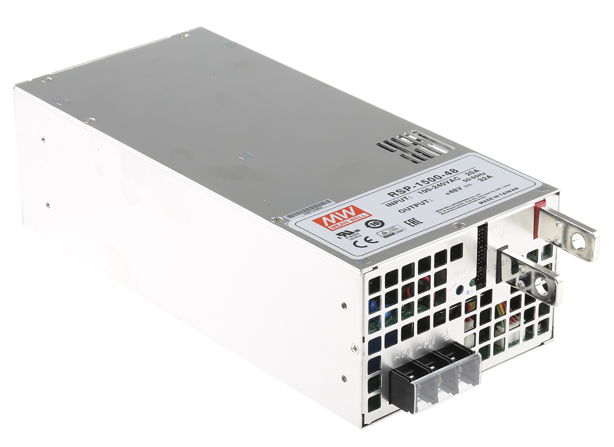 The Mean Well RSP-1500-48 delivers robust and efficient power for demanding industrial and commercial environments in the UK. This high-performance embedded switch-mode power supply offers a powerful 32A output at 48V DC, ideal for heavy-duty applications where reliability and continuous operation are crucial. Moreover, it is designed for easy chassis mounting, ensuring simple integration into control panels, automation equipment, and energy systems. Its high output and robust design minimise downtime and maintenance, making it a cost-effective choice for UK businesses and engineers.