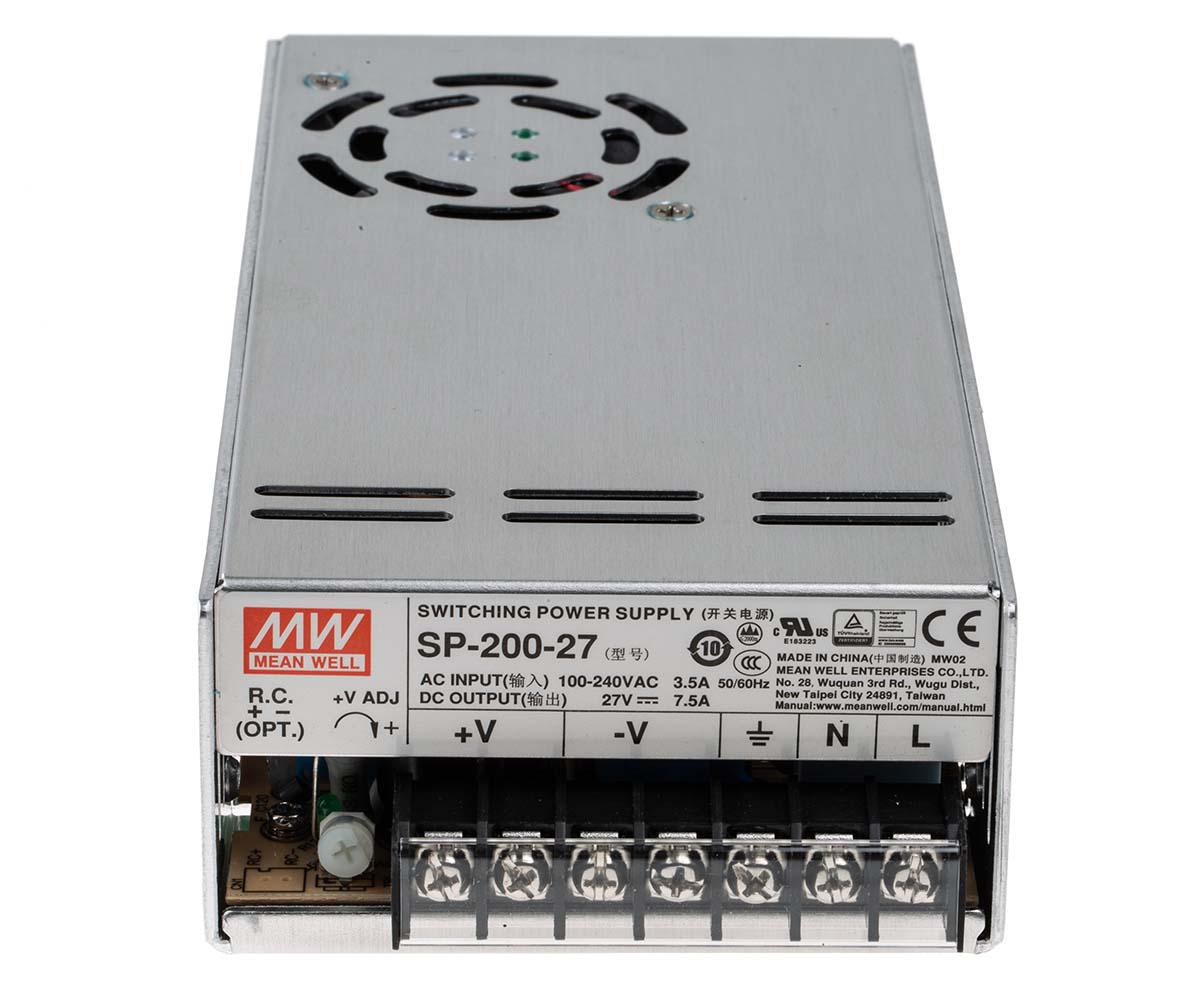 This is 202.5W Embedded Switch Mode Power Supply SMPS 7.5A 27V dc manufactured by Mean Well. The manufacturer part number is SP-200-27. Additionally, the product is supplied with 1 outputs. The product has +60°c maximum temperature. The product is available in chassis mount configuration. The typical product's weight is 850g. Furthermore, the product is 99mm wide. While its minimum temperature is -10°c. Its accurate length is 199mm. It is a highly efficient product with an 83% of high efficiency. The product comes in 50mm depth. Its input voltage is 120 → 370 v dc, 85 → 264 v ac. The package is a sort of enclosed. Features a 27v dc output voltage. Feature 202.5w of power rating. It carries 7.5a output current.
