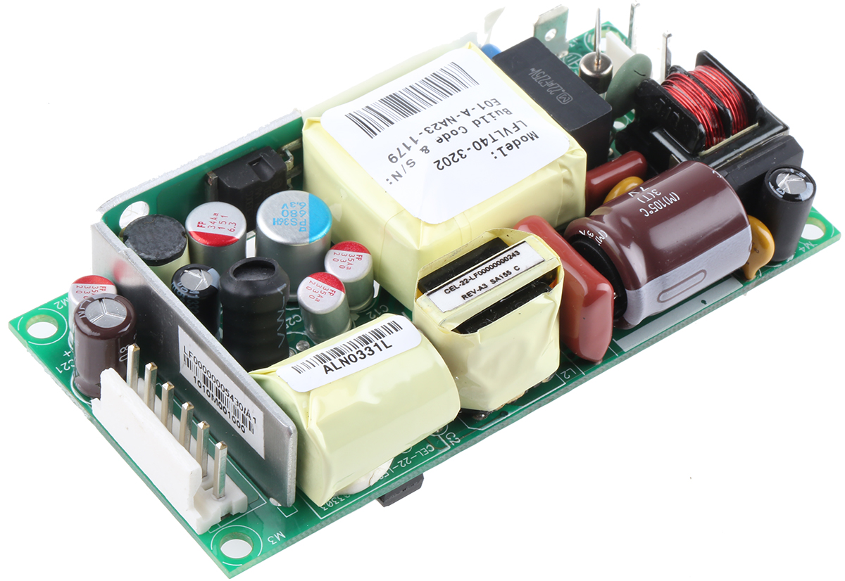 This is 40W Triple Output Embedded Switch Mode Power Supply SMPS 1.5 A 6 A 500 mA 5.2/14.6/14.8V dc manufactured by EOS. The manufacturer part number is LFVLT40-3202. Additionally, the product is supplied with 3 outputs. The product has +50°c maximum temperature. The product is available in chassis mount configuration. The typical product's weight is 150g. Furthermore, the product is 50.8mm wide. While its minimum temperature is 0°c. Its accurate length is 101.6mm. It is a highly efficient product with an 82% of high efficiency. The product comes in 27.18mm depth. Its input voltage is 180 → 264 v ac, 90 → 132 v ac. The package is a sort of open frame. Features a 5.2 v dc, 14.6 v dc output voltage. Feature 40w of power rating. It carries 1.5 a, 6 a, 500ma output current.