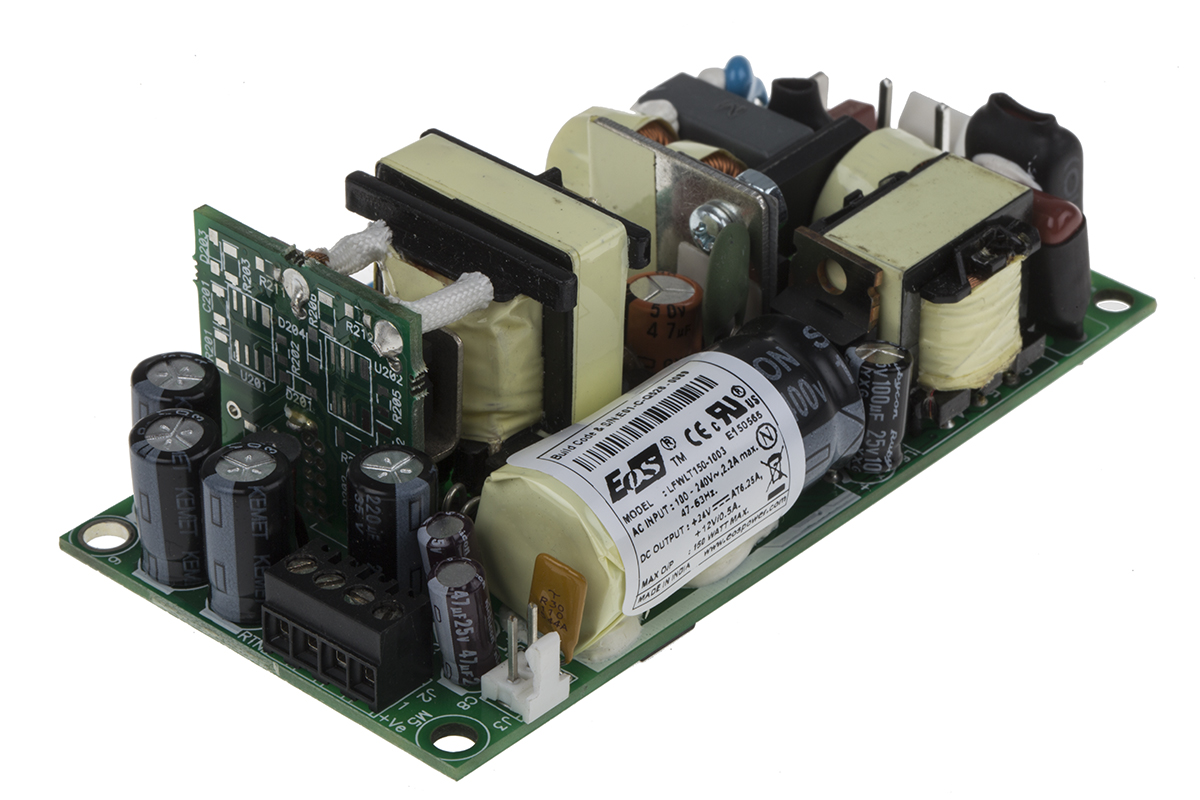 This is 150W Embedded Switch Mode Power Supply SMPS 6.25A 24V dc manufactured by EOS. The manufacturer part number is LFWLT150-1003. Additionally, the product is supplied with 1 outputs. The product has +70°c maximum temperature. The product is available in chassis mount configuration. The typical product's weight is 150g. Furthermore, the product is 50.8mm wide. While its minimum temperature is -20°c. Its accurate length is 101.6mm. It is a highly efficient product with an 86% of high efficiency. The product comes in 33.64mm depth. Its input voltage is 120 → 390 v dc, 90 → 264 v ac. The package is a sort of open frame. Features a 24v dc output voltage. Feature 150w of power rating. It carries 6.25a output current.